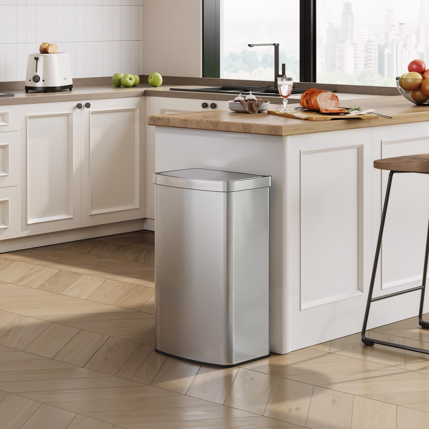 - Sleek & Smudge-Proof: Crafted with anti-fingerprint stainless steel, this touchless garbage can resists smudges while maintaining a sleek, scratch-resistant finish. Durable and visually versatile, it blends effortlessly into any decor.