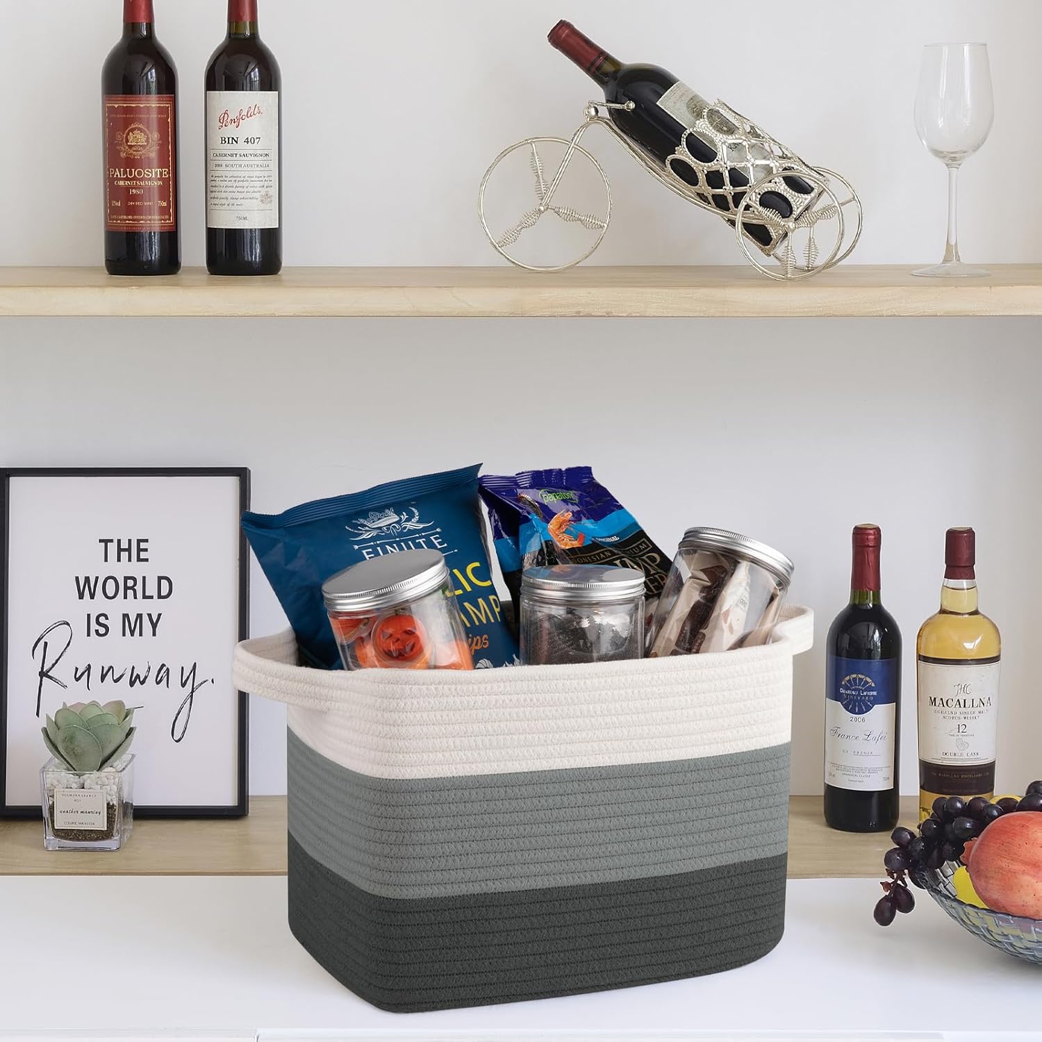 - High Quality Cotton Rope Woven: Woven cotton thread is very soft and don't damage your floors and furniture. Seamless design, not easy to tear,More firm than rattan and plastic materials. Our storage basket has no harsh chemiacls added, and the cotton rope basket is safe for kids, elders and pets. Firm enough and stylish enough to go anywhere in the home