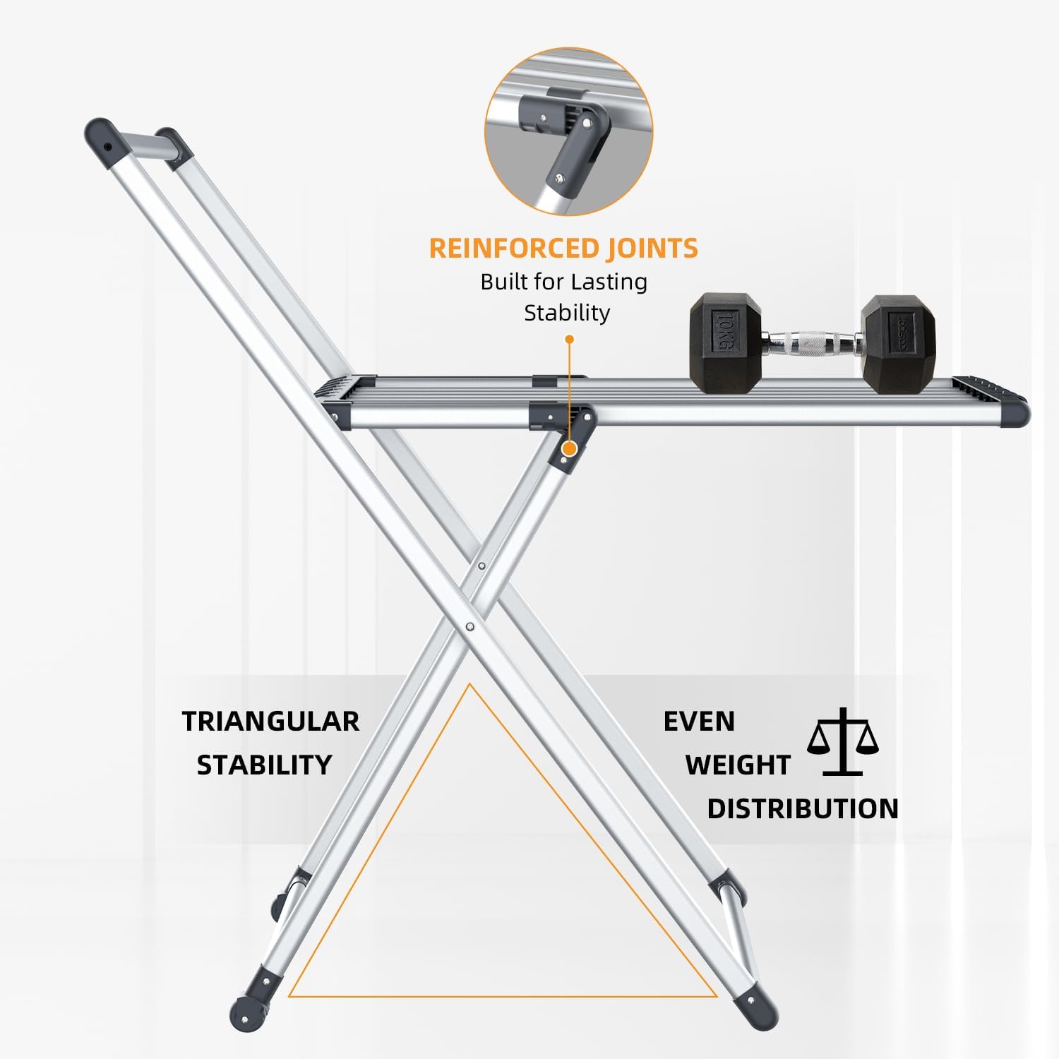 - Maximum Capacity and Stability: Featuring reinforced joints and triangle stability, this laundry drying rack ensures unmatched sturdiness while handling up to 60 lbs of laundry with ease. Designed with a durable aluminium frame for long-lasting use & Non-slip feet to provides stability.