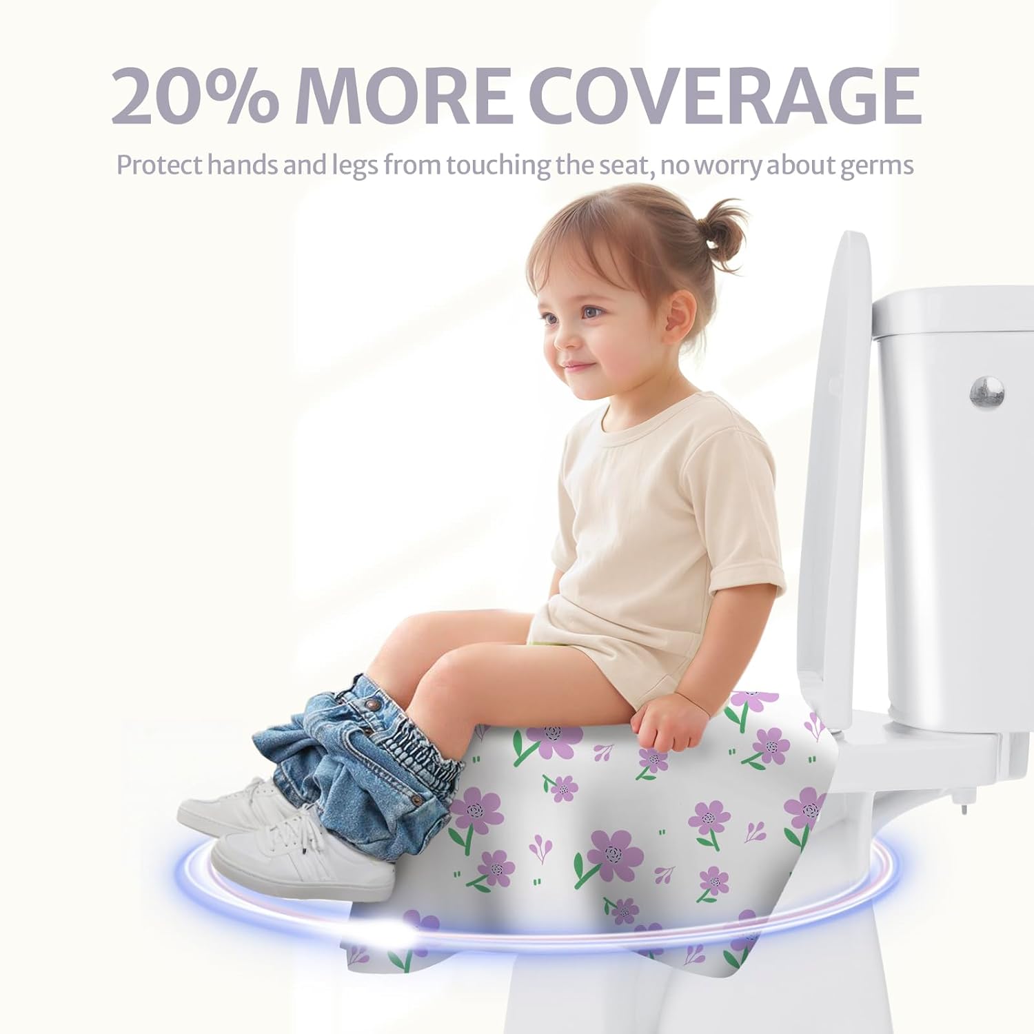 Blissful Diary 20 Pcs Toilet Seat Covers Disposable for Toddlers & Adults, Extra Large Waterproof, Portable Package for Travel, Kids Potty Training(Purple Flowers))