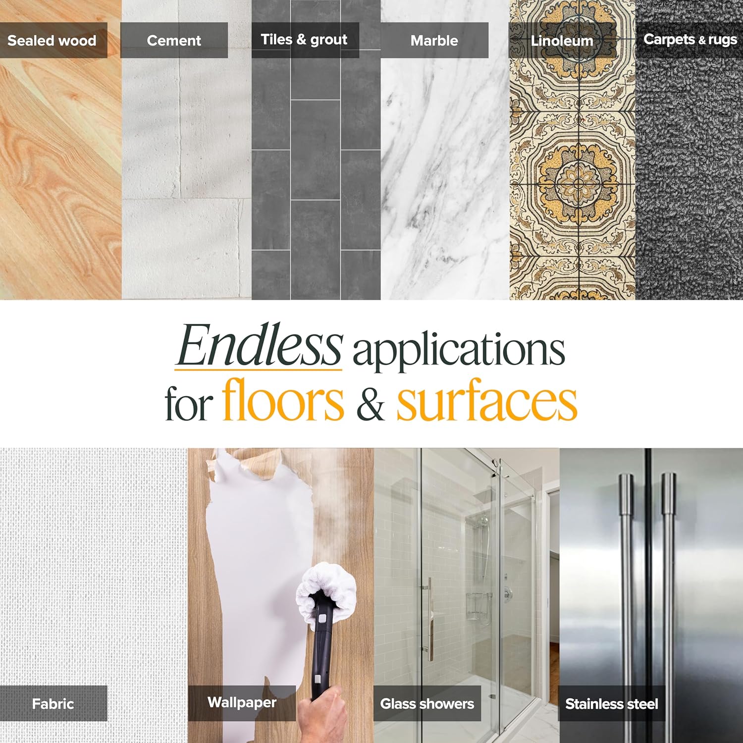 - 𝗣𝗼𝘄𝗲𝗿𝗳𝘂𝗹 𝗖𝗵𝗲𝗺𝗶𝗰𝗮𝗹-𝗙𝗿𝗲𝗲 𝗖𝗹𝗲𝗮𝗻𝗶𝗻𝗴: Generates superheated steam to break down stubborn dirt, grease, and grime effortlessly, delivering chemical-free deep cleaning on a variety of surfaces. Clean. Sanitize. Refresh. Detail. Deodorize. Multiple surfaces, naturally