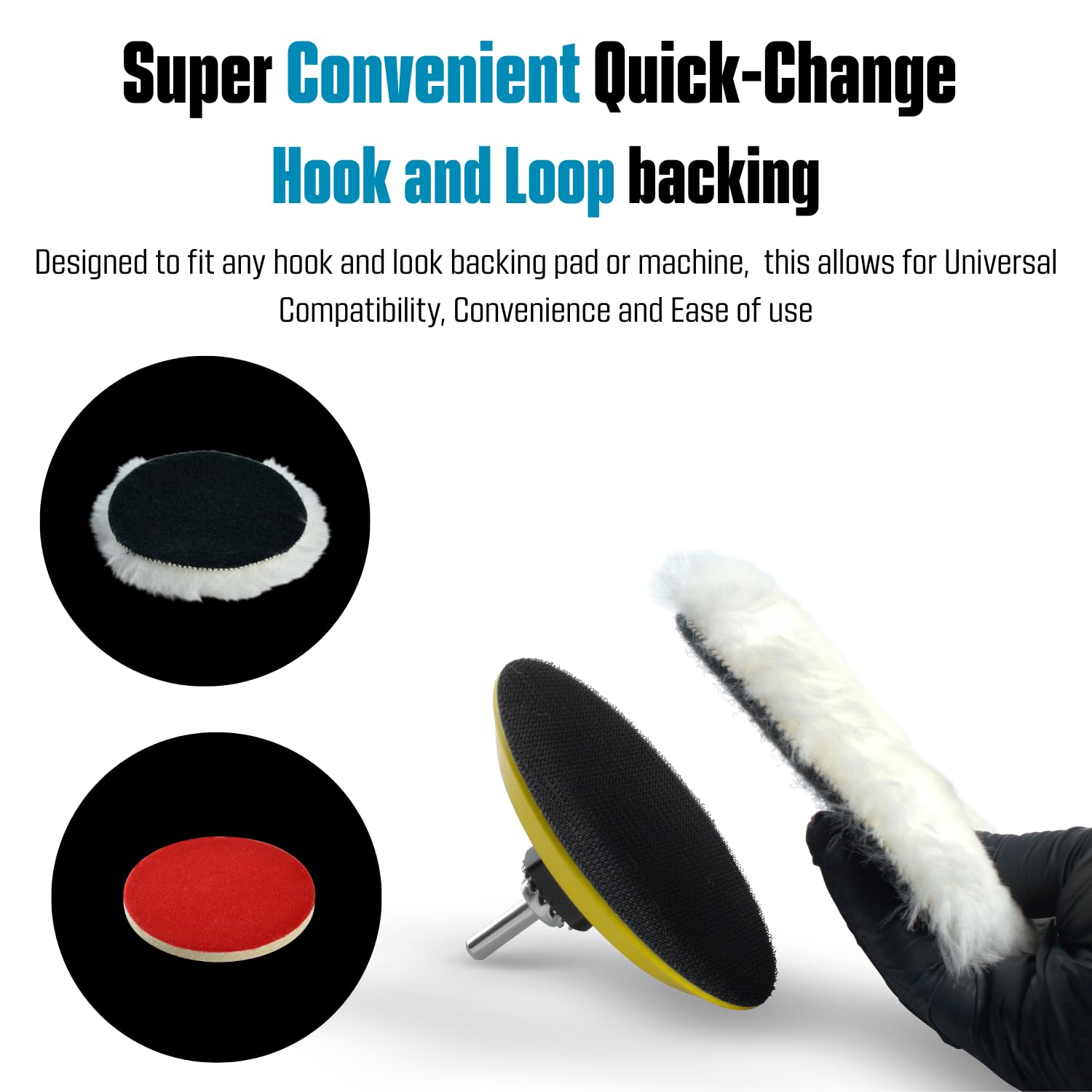 - Complete Wool Polishing Kit for Professional Finishes: Includes 5x 5-inch hard wool buffing pads and 5x soft wool polishing pads with hook and loop quick change backing, as well as a 5/8"-11 backing pad for the Buffer or Angle grinder and also comes with drill adapters for use with any drill or air die grinder.
