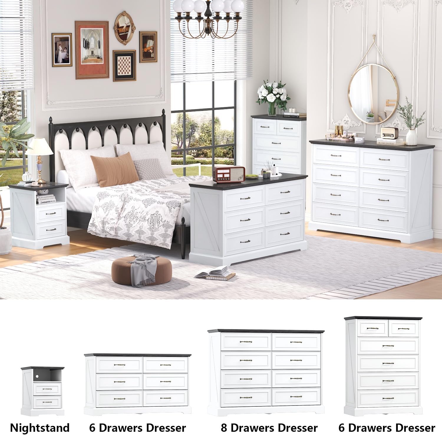 - Timeless, Refined Design: This tall 6-drawer farmhouse dresser for the bedroom combines sleek, contemporary lines with natural wood grain, bringing warmth and character to any room. The antique bronze metal handles add vintage charm, creating a perfect balance of traditional and modern design. Whether used as a tall dresser, a modern 6-drawer dresser, a bedroom dresser, or a storage dresser for closet, this piece serves as both a functional storage solution and a stylish focal point in your space.