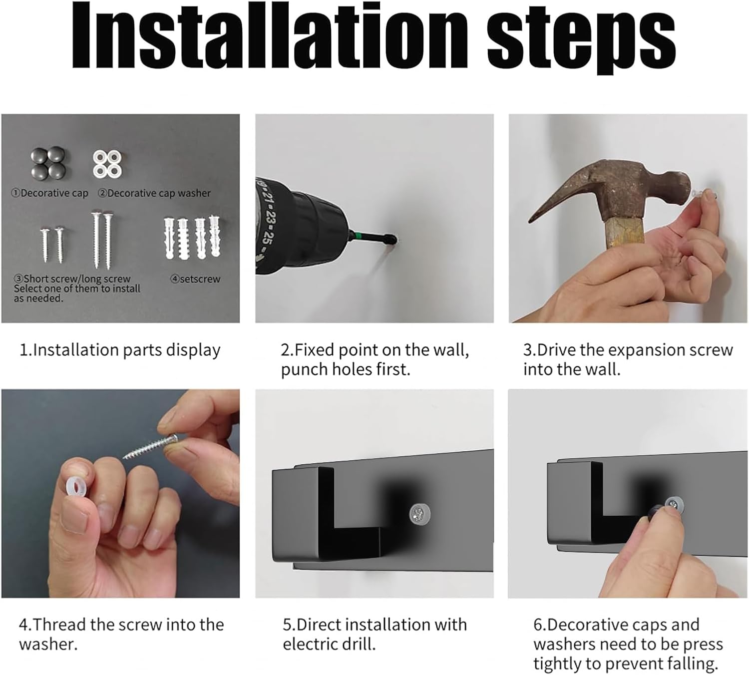 - Easy to install: Wall mounted hangers are easy to install on walls or wooden doors; The installation hardware includes screws, plastic expansion anchors, and washers