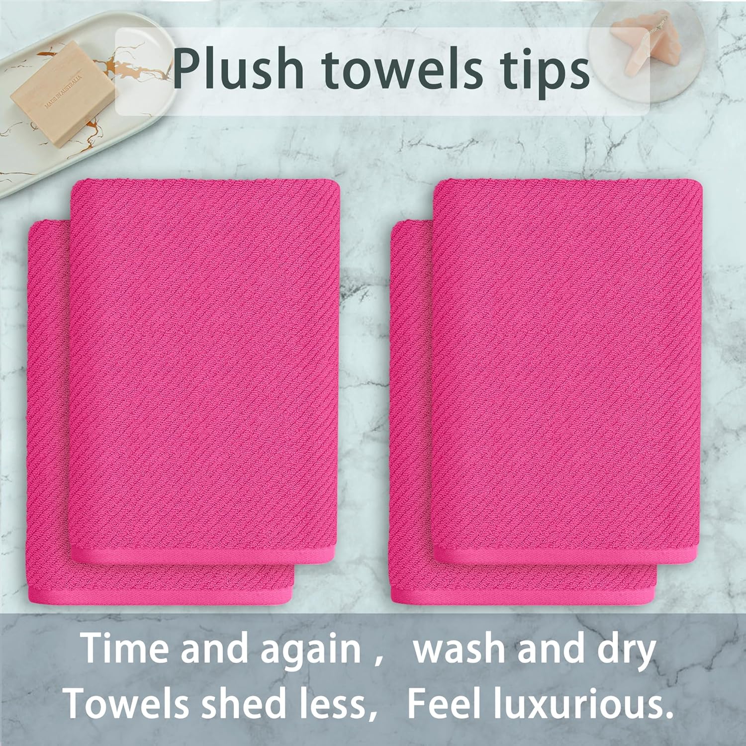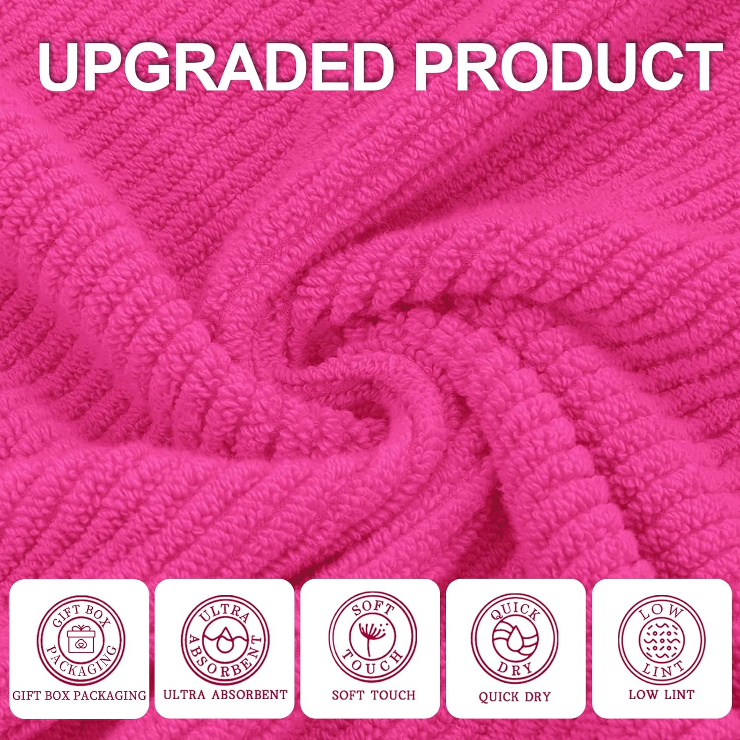 Hot Pink Bath Towels (4PC Large, 30"x56") - 100% Cotton | Quick Dry | Light Weight | Thick | Soft | Absorbent, Luxury Shower Towels with Hanging Loops, Towel Gift Set, Hot Pink Bathroom Accessories