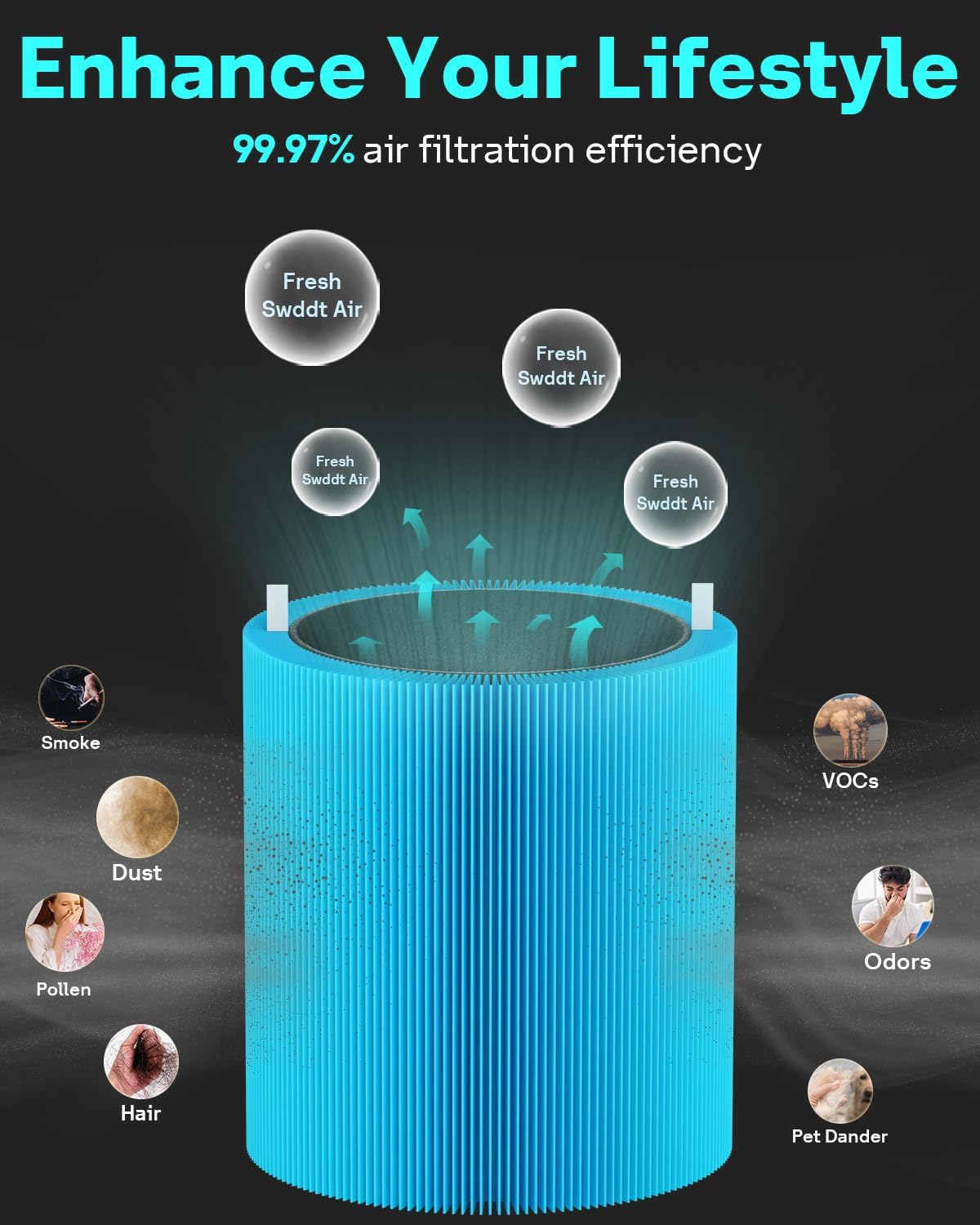 - 【SUPERIOR QUALITY】: Blue Pure 311i+ Max AllergenBlock Replacement Filter for Blue Pure 311i+ Max Air Purifier , effectively capturing a remarkable 99.97% of particles as small as 0.1 microns, and cleans pet dander, pollen, and dust. The activated carbon filter efficiently tackles household odors and harmful gases, safeguards you from household odors