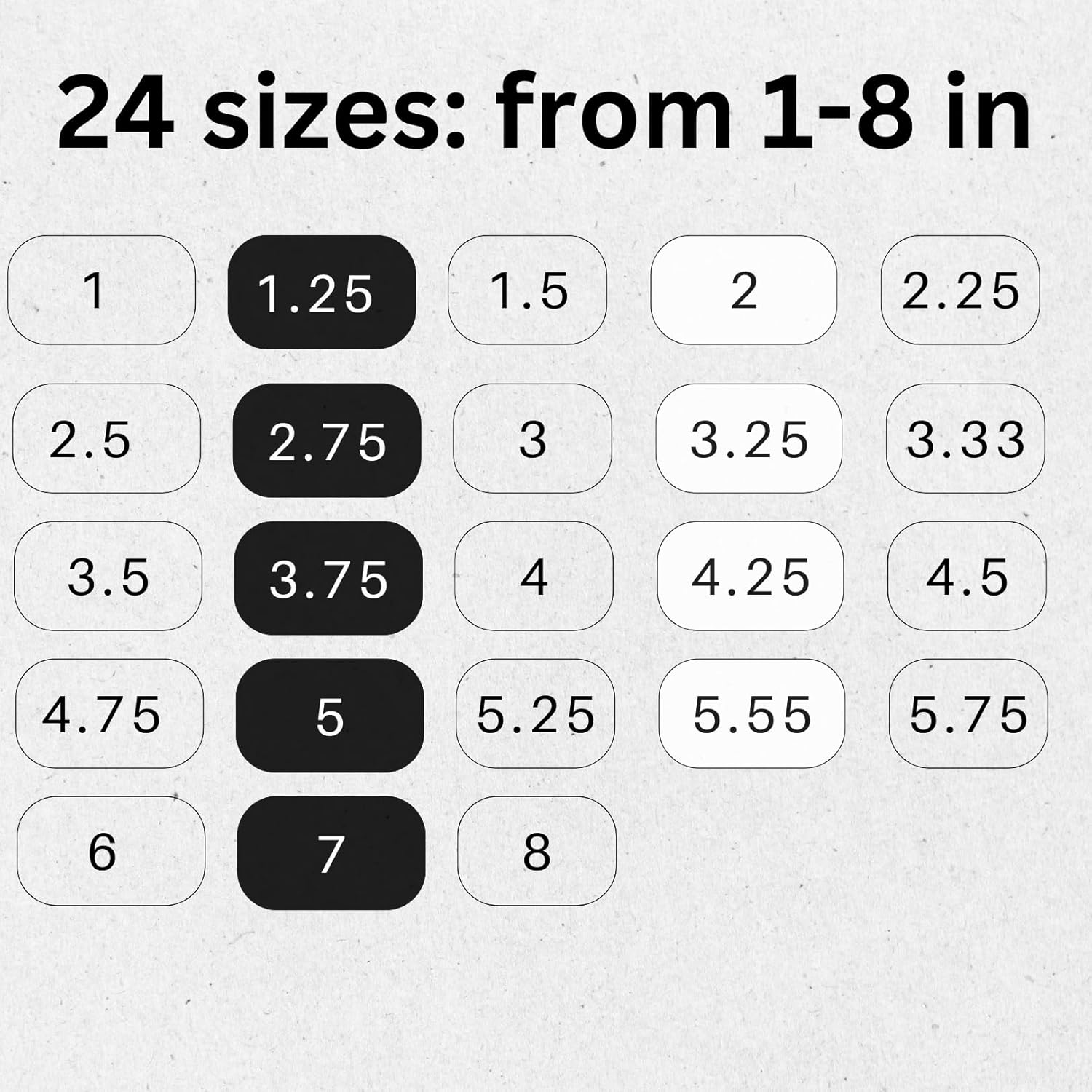 - 24 sizes for most use, from 1-8 in