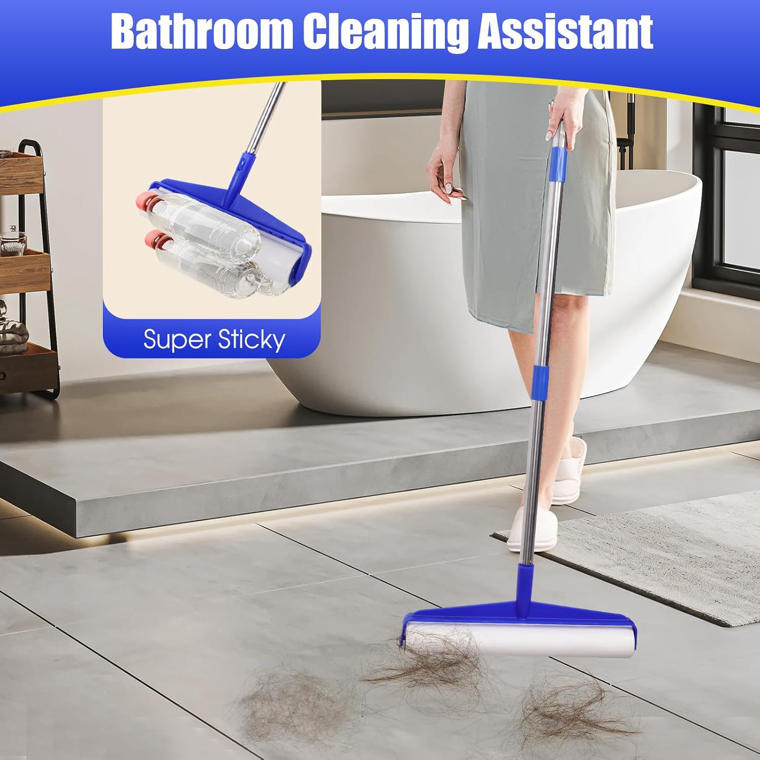 COBETE 13.77" Large Extra Sticky Lint Roller, 69.88" Long Handle Lint Remover with 6 Rollers for Clothes, Cat Dog Pet Hair, Furniture, Couch, Carpet, Floor,Painted Wall Cleaner Mop Dust Cleaning