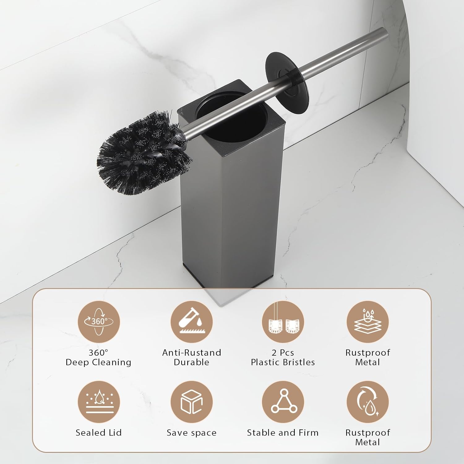 BGL Standing Toilet Brush and Holder GunGrey Aluminium Toilet Bowl Cleaner Brush and Holder for Bathroom Storage and Organization, Square Design Sturdy and Space Saving