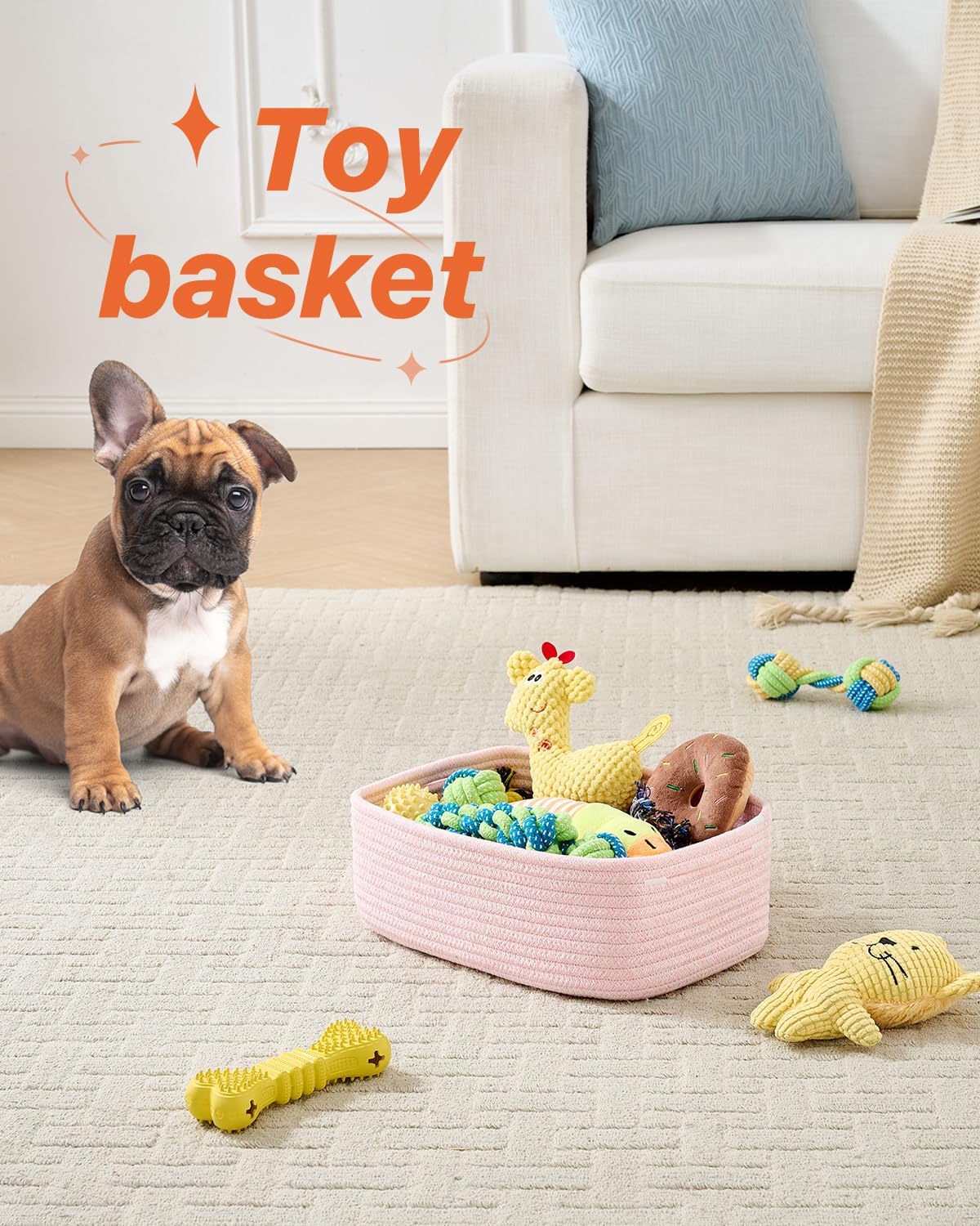 - [ Safe & Durable ] Our small woven basket is made of 100% natural cotton rope that is sturdy yet soft to touch, odor free, free of harsh chemicals, no hard edges that protect your precious furniture and flooring from scratches. So, it's a reassuring choice for families with babies and pets. We use high-quality ropes and hand-woven by skilled artisans to ensure the quality of our cotton rope baskets, tightly constructed and long-lasting