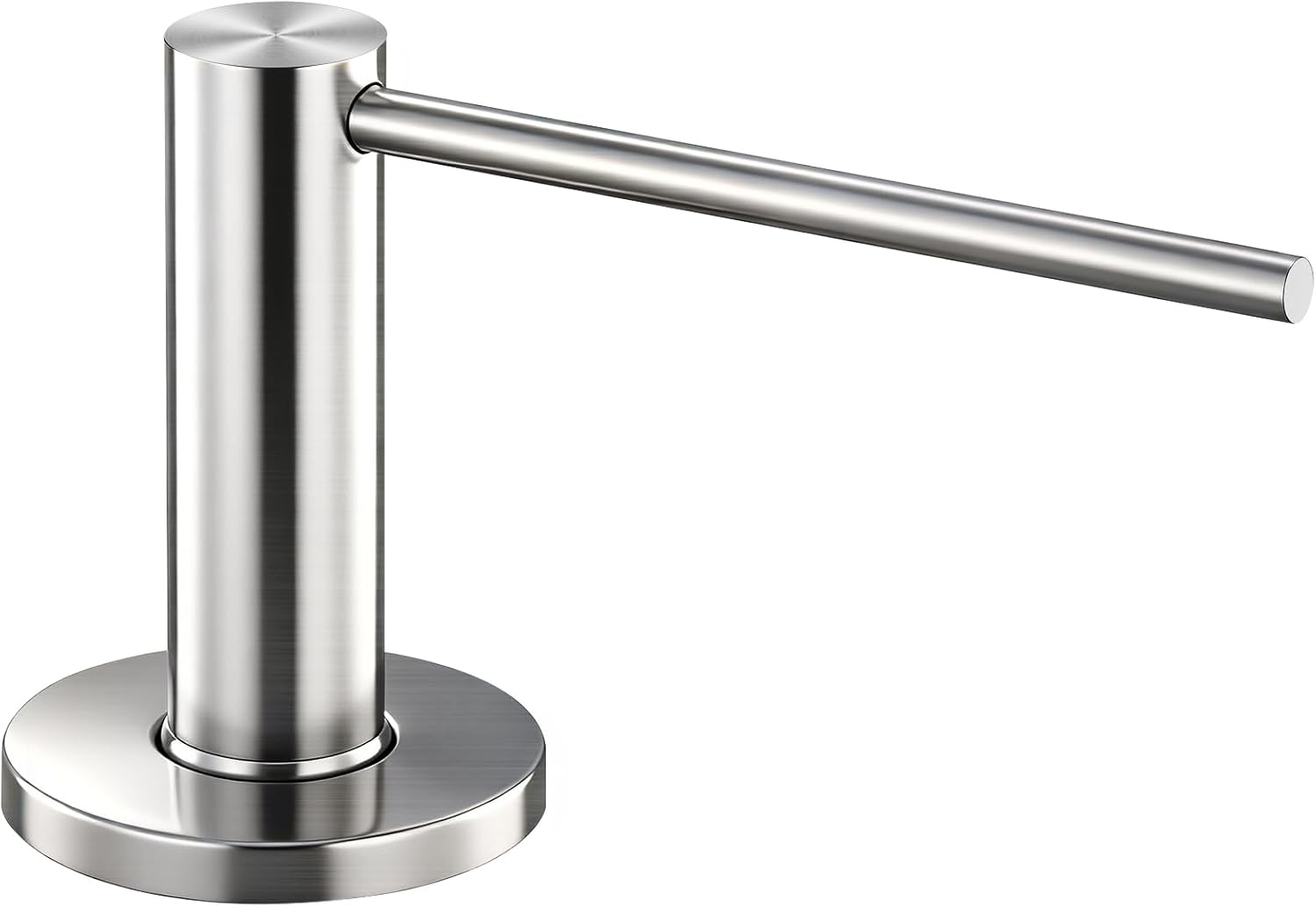 - [Stainless Steel Kitchen Sink Soap Dispenser] Crafted with commercial grade 304 stainless steel, this kitchen sink soap dispenser resists corrosion, rust, and fingerprints while ensuring durability against daily exposure to water and cleaning agents. The solid metal construction maintains a sleek appearance and complements modern sink fixtures