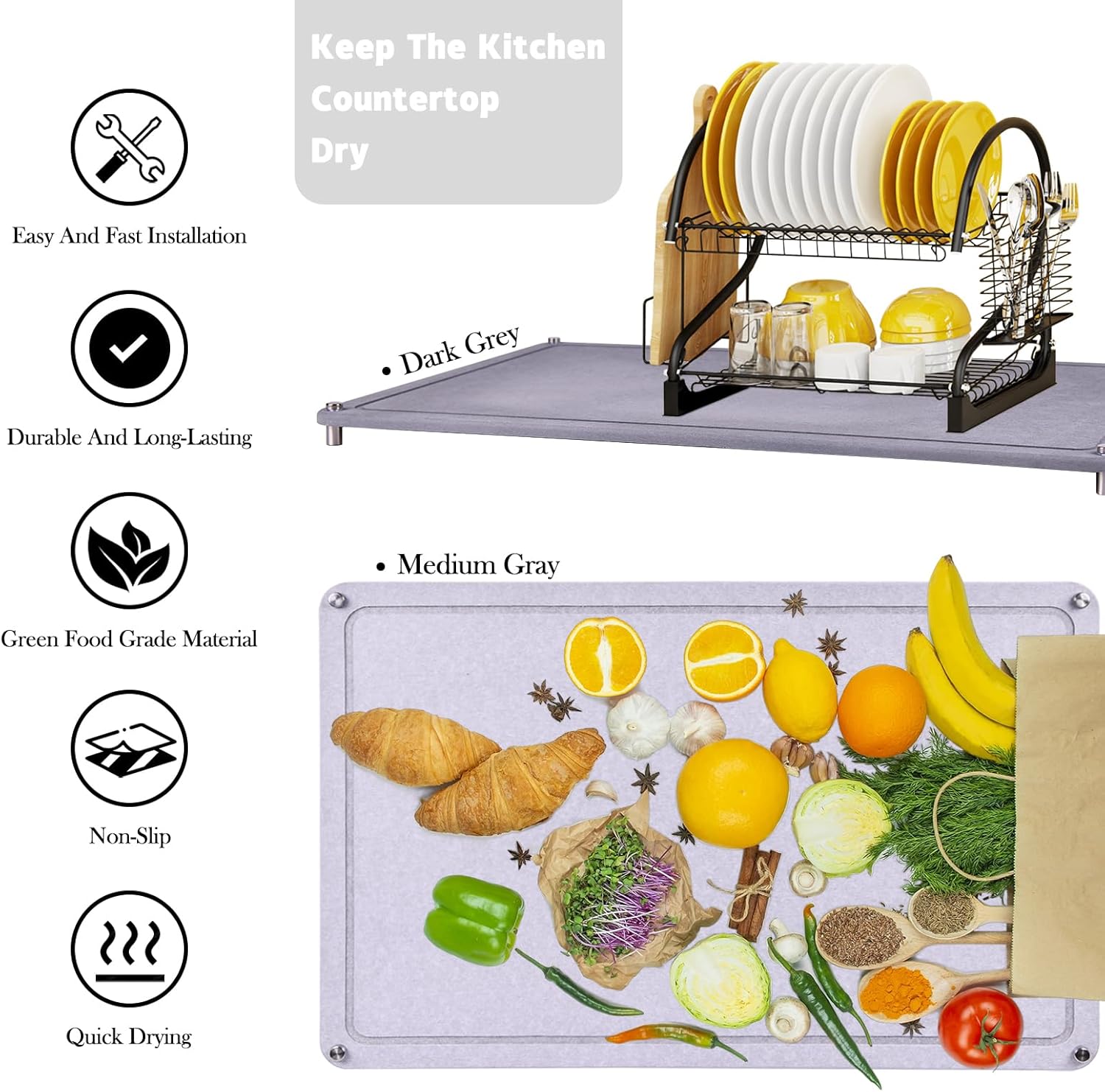 - 【 Simple Setup & Easy Maintenance 】This drying mat with 4 Non-Slip Stainless Steel Feet Pads, installation is quick and hassle-free. Before first use, simply wipe the surface with a damp towel to remove any residual powder, then let it dry in a ventilated area. Low-maintenance and durable, it’s designed for long-term use