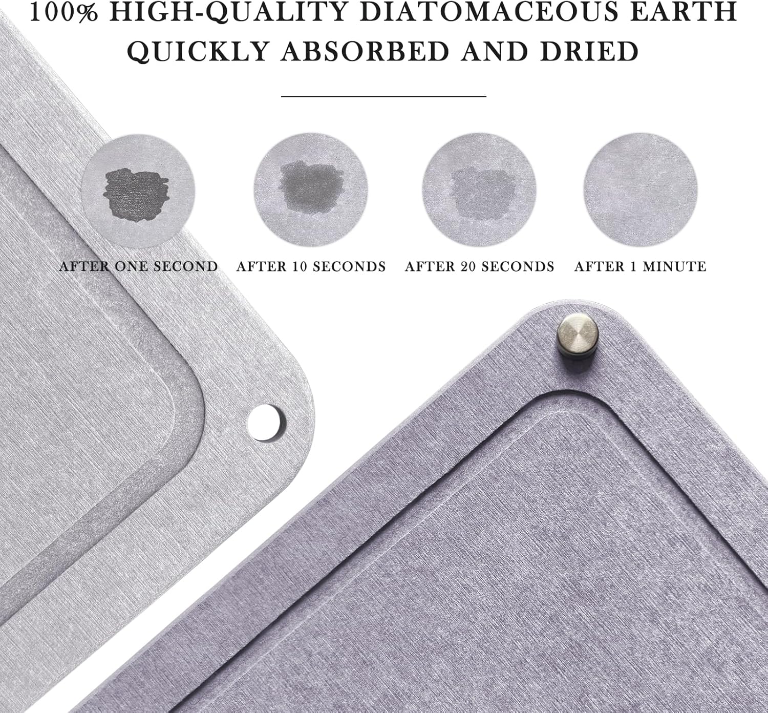 - 【 Quick Drying & Super Absorbent 】This kitchen drying mat is different from traditional silicone or fiber mats,this diatomaceous earth dish drying mat features a porous structure that instantly absorbs moisture, keeping your countertop dry and tidy. Its quick-drying properties make it perfect for daily use