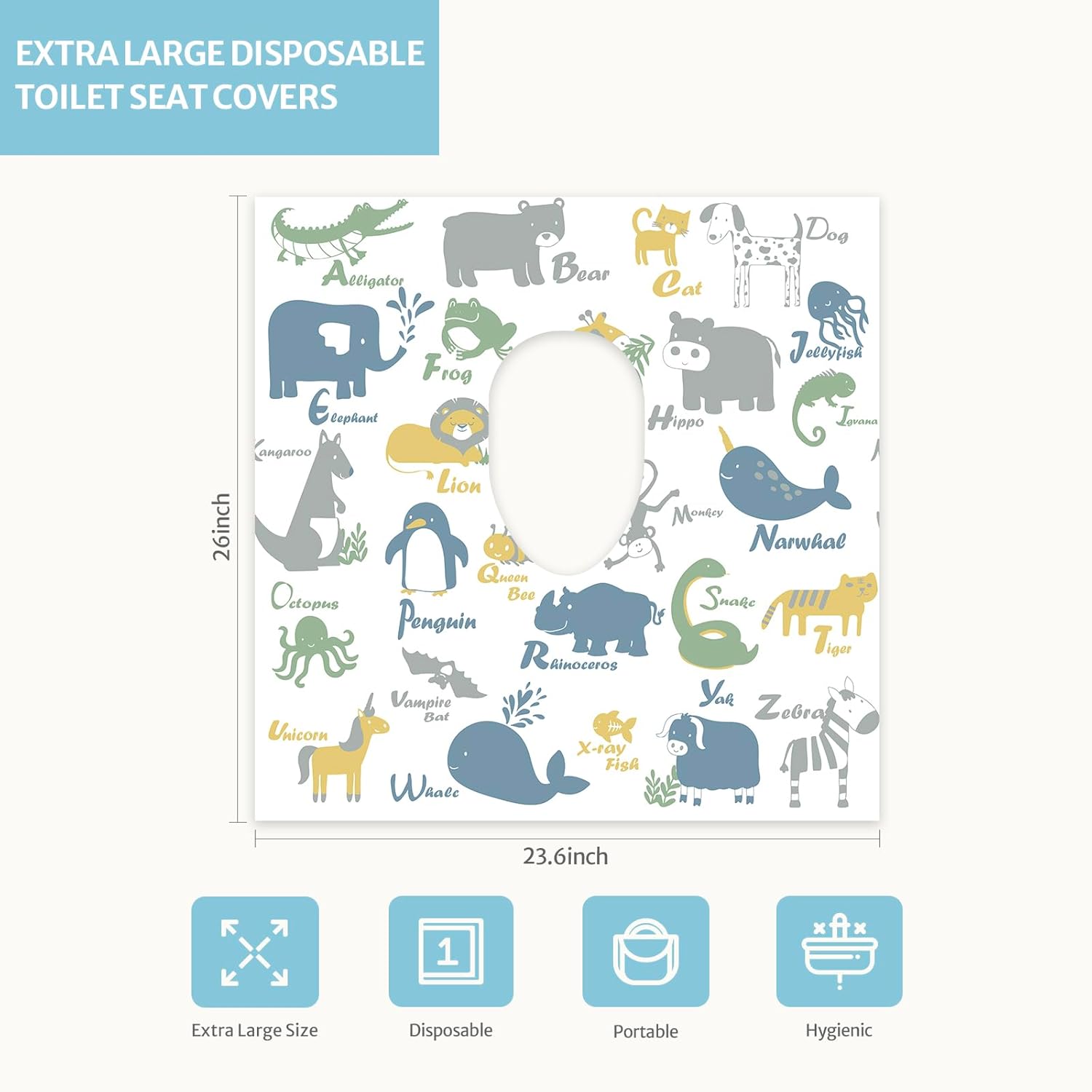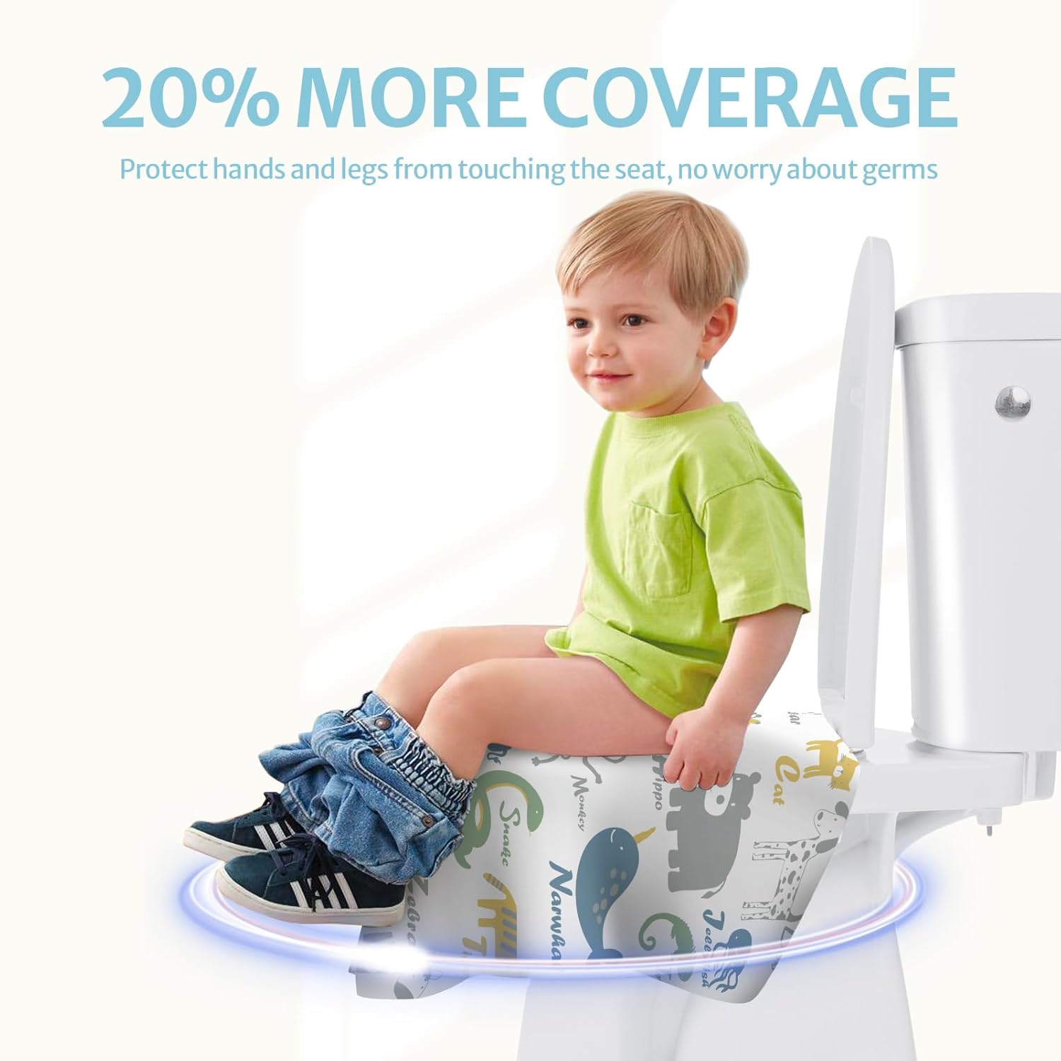 - No More Stress: 26x23.6inch extra large disposable toilet seat covers, so nice and huge to cover the entire toilet seat, sides, and part of the front of the toilet, no more worrying about your kids touching the seat. Ideal for adults too