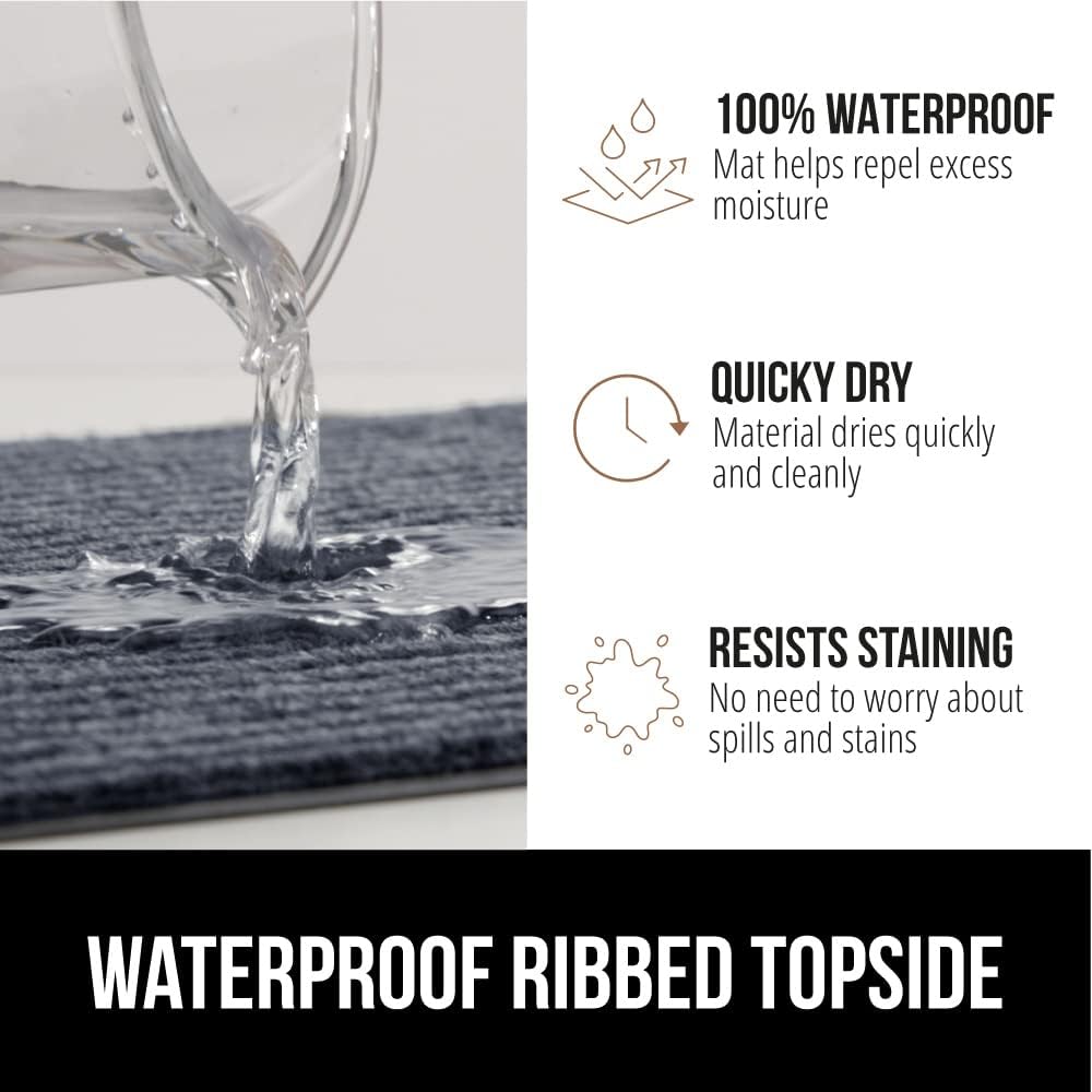 - WATERPROOF RIBBED TOPSIDE: ultra absorbent and 100% waterproof, the mat's surface helps to capture excess water and moisture; plus, premium fabric dries quickly and resists staining and fading for long lasting use