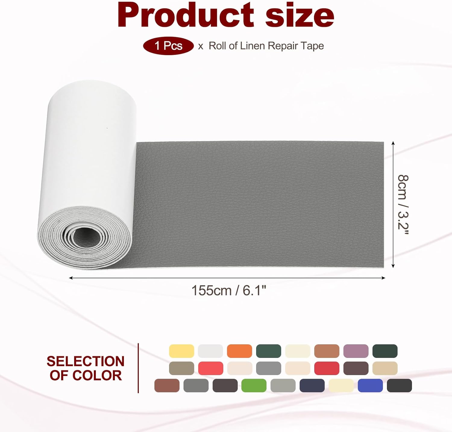 - Material: PVC Leather; Color: Deep Gray; Size: 8 x 155 cm / 3.2 x 61 inch; Package Included: Leather Patches x 1 Roll
