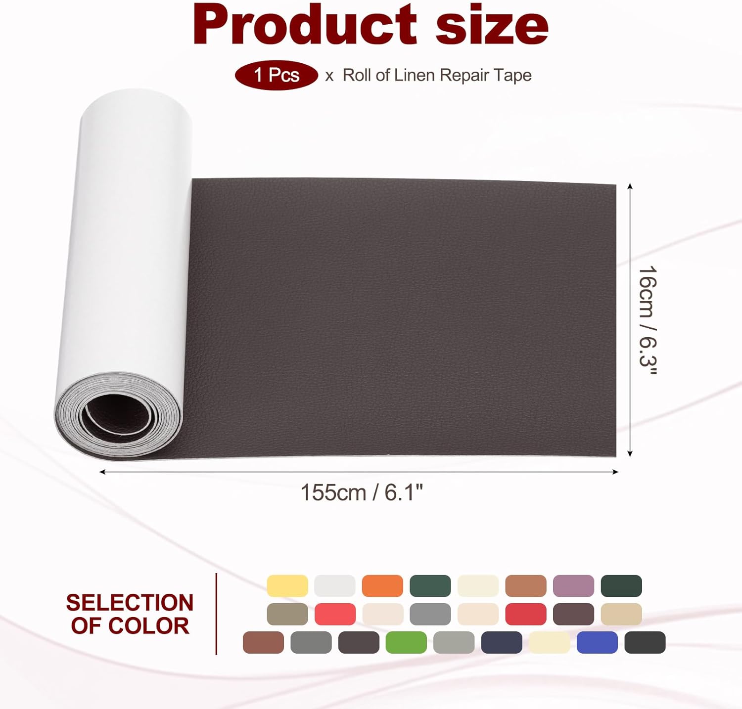 - Material: PVC Leather; Color: Deep Coffee; Size: 16 x 155 cm / 6.3 x 61 inch; Package Included: Leather Patches x 1 Roll