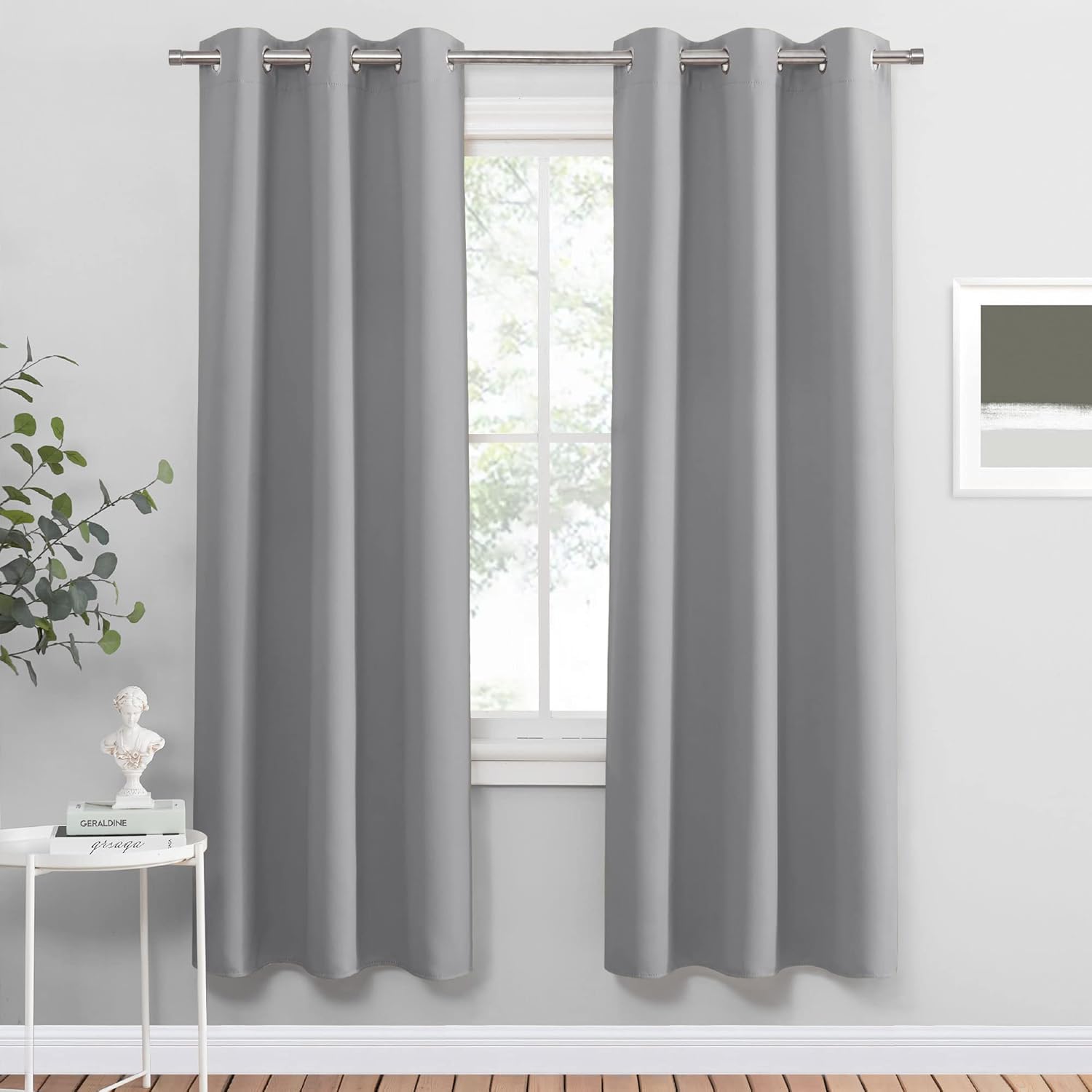 PONY DANCE Blackout Curtains for Bedroom 72 Inch Length 2 Panels Set, Privacy Thermal Insulated Room Darkening Grommet Drapes for Living Room Window, W34 x L72 Inch, Sliver Grey