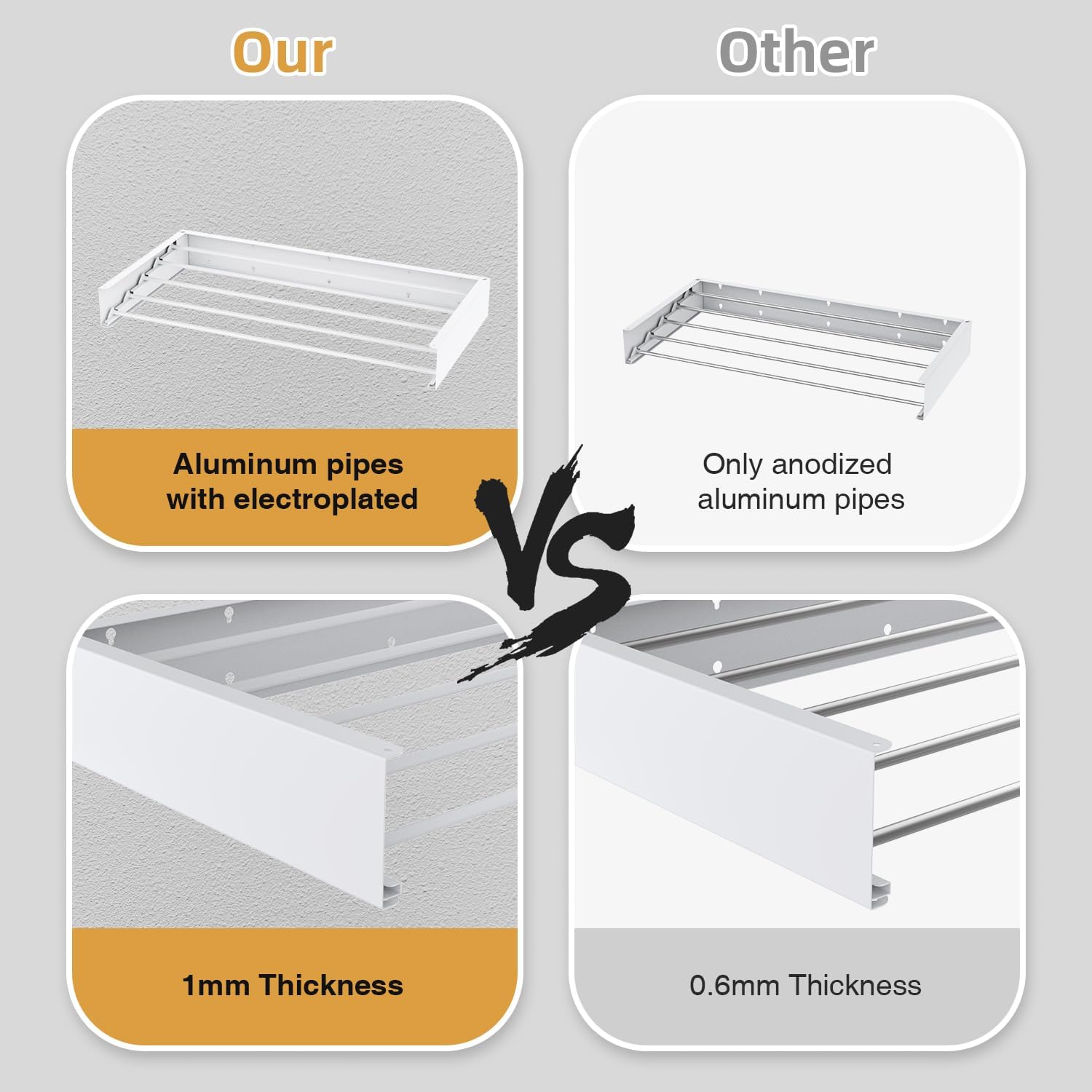 - ✅【Save Space and Save Money】Folding for indoor or outdoor, this laundry clothes drying rack is a great space saver. Compact, retractable wall-mounted design to maximize your limited space or add elegance to your spaces. Great for space constrained homes, apartments, hotels, laundry rooms. When not in use, fold it quickly to store until ready to use again. Compared to other inexpensive clothing drying rack, you don't need to replace them every year, you can save lots of money.