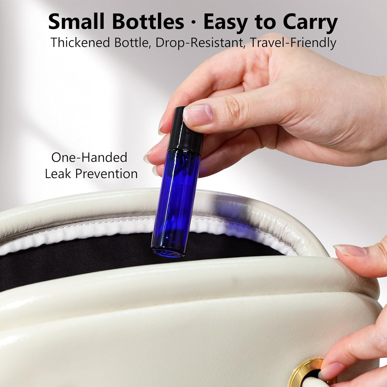 - Lightweight & Portable: These blue roller bottles for essential oils are designed with portability in mind. They fit easily into your purse, gym bag, or travel kit, making them the perfect travel essentials for your favorite oils, perfumes, or skincare blends. Enjoy aromatherapy or skin care treatments on the go—without worrying about leaks or spills.