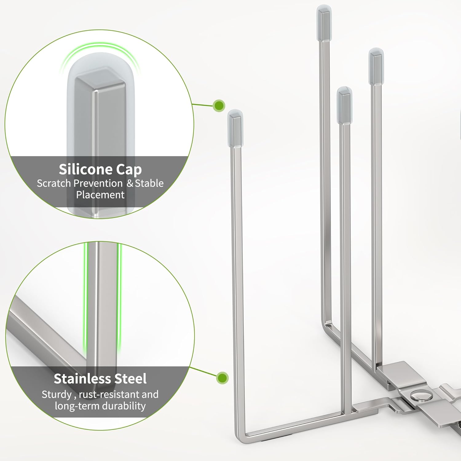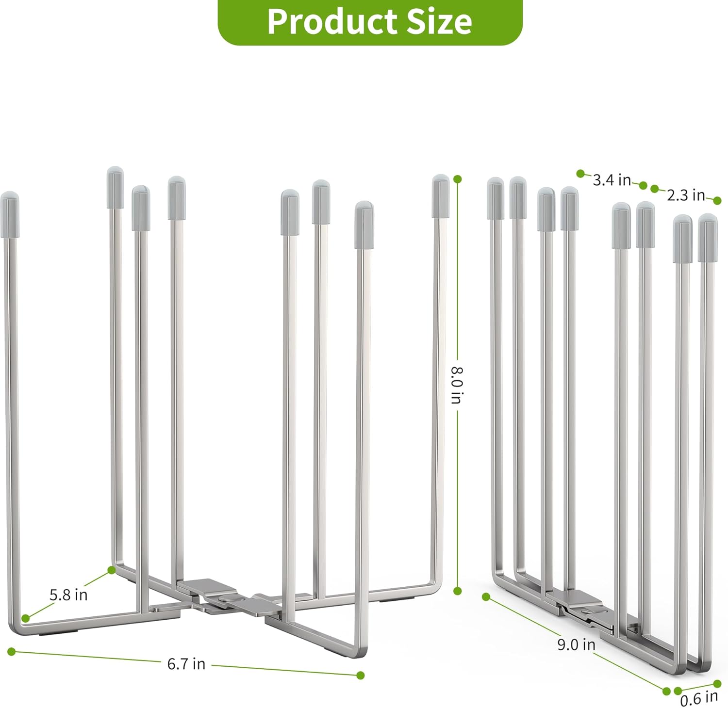- 【Durable & Sturdy Construction】Built to last, this bottle drying rack features eight stainless steel rods with protective silicone caps, a robust foldable base, and eight anti-slip pads for maximum stability. Made from rust-proof 304 stainless steel, the thick and sturdy poles provide reliable support for bottles, reusable bags, and more.