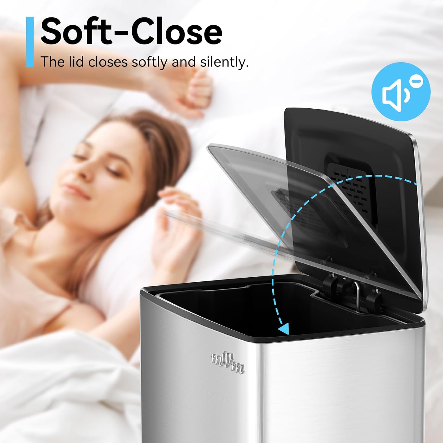 - Odor seal: The MVM trash bin is equipped with a carbon fiber filter that absorbs and neutralizes odors inside the bin, and the lid closes tightly to prevent odors from escaping.