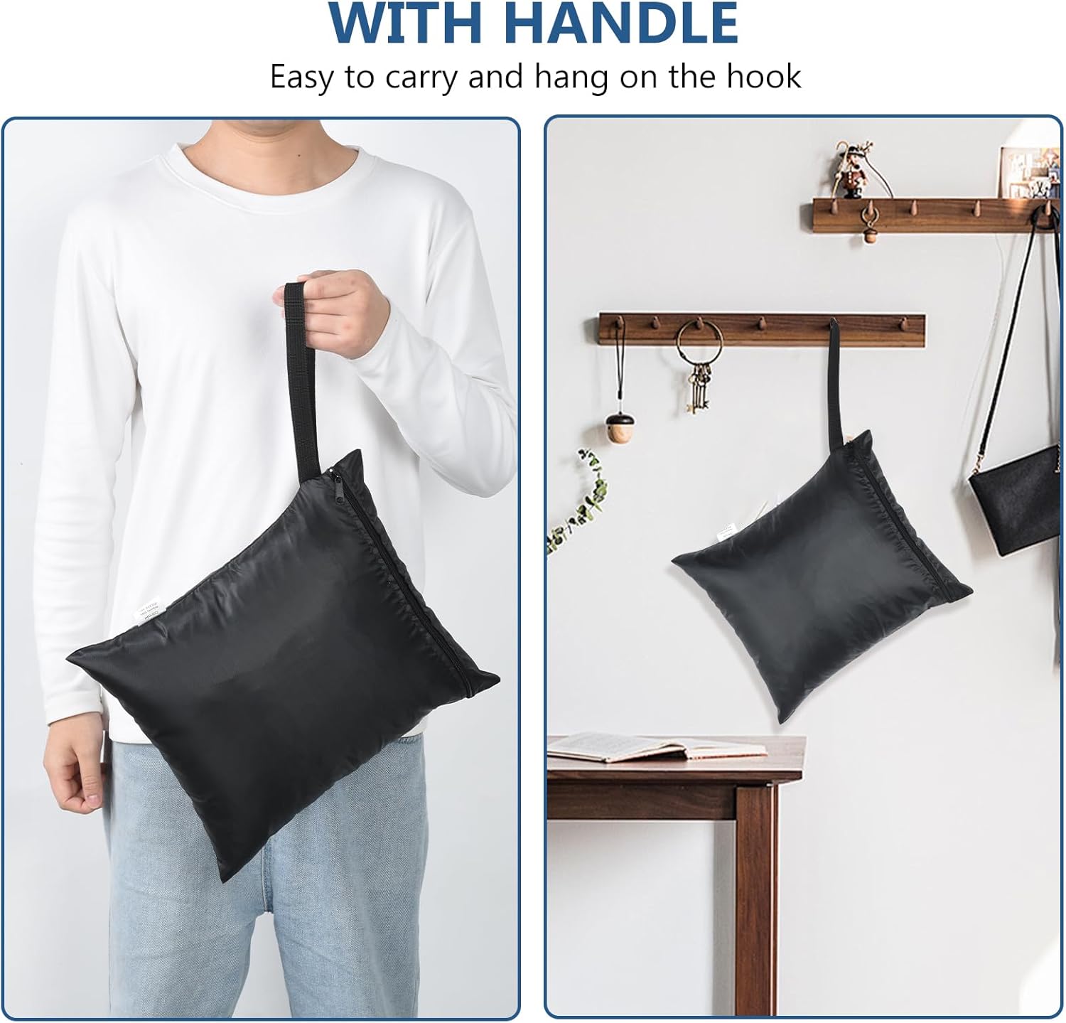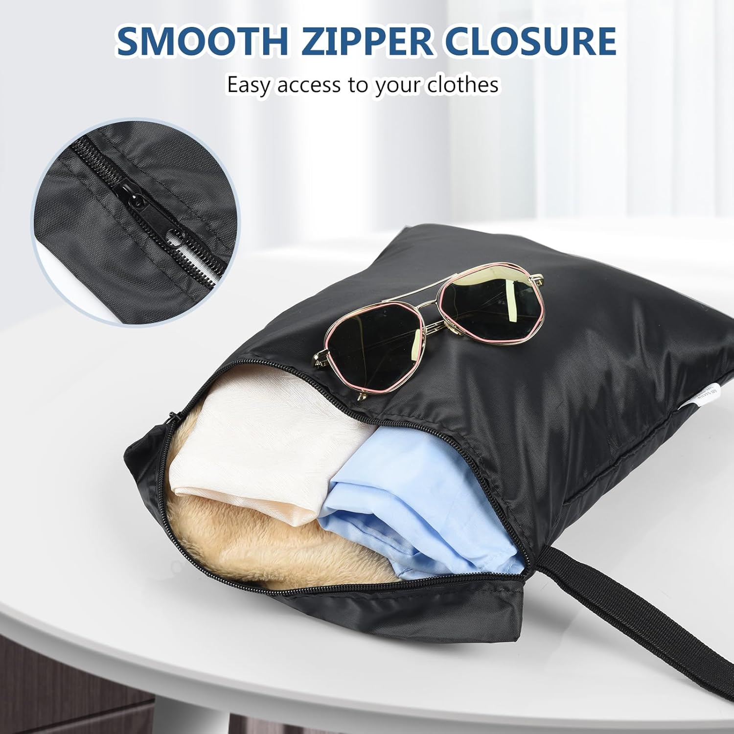 - 【Portable Use】Each wet bags for swimsuits features handle and zip closure to ensure that nothing will drop out of the bag and better to separate dry items from wet items. Fold up easily and take up less space for easy carrying in your handbag or suitcase. Hang bags easily on the doorknob, stroller, backpack, or other places with hook when going outside.