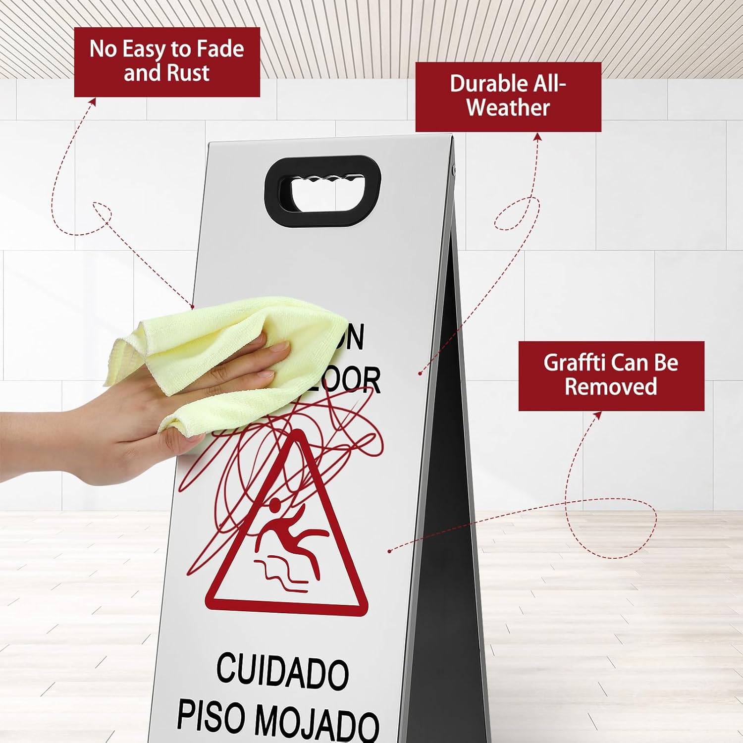 - Quality Material: our wet floor sign is designed with stainless steel to ensure its durability and wear resistance; You can expect this caution wet floor sign to accurately signal to those who need to know about the wet surface for many years