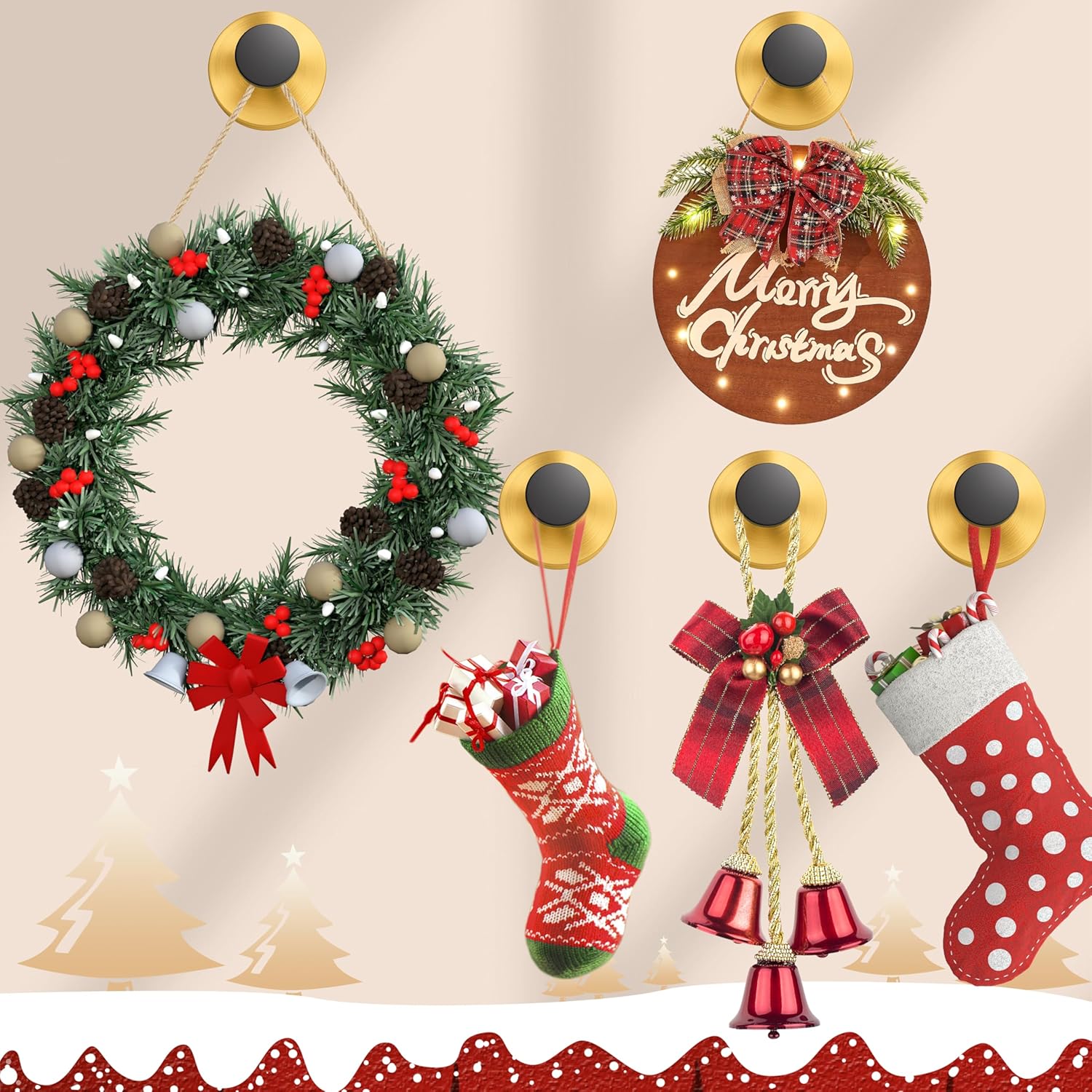 - 【Hangs Securely on 10+ Materials】The suction cup hooks are suitable for christmas decorations ,bathrooms,kitchens,windows, wreath hanger,heavy duty suction cups for glass.it can be fixed to fit tile, glass, mirror, marble, metal,acrylic,plastic,stainless steel and other smooth wall surfaces.,it can hang towels, loofahs, bathrobes,garland wreath and other items up to 15 lbs.