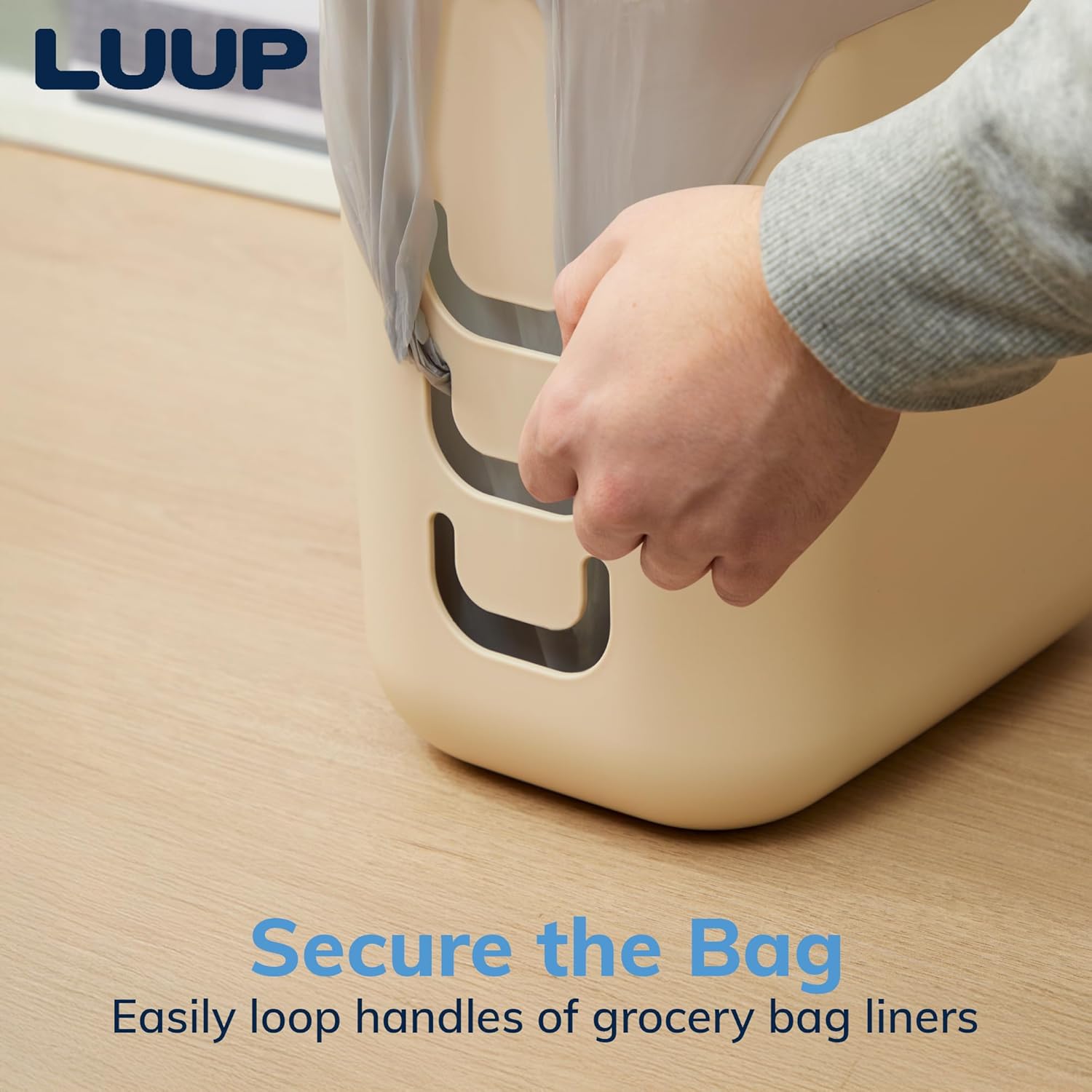 STORi Luup Bathroom Wastebasket, Secure Grocery Bags, Plastic Garbage Container for Vanity, Laundry Room, Kitchen, Office, 2.5 Gallon, Beige, Made in USA