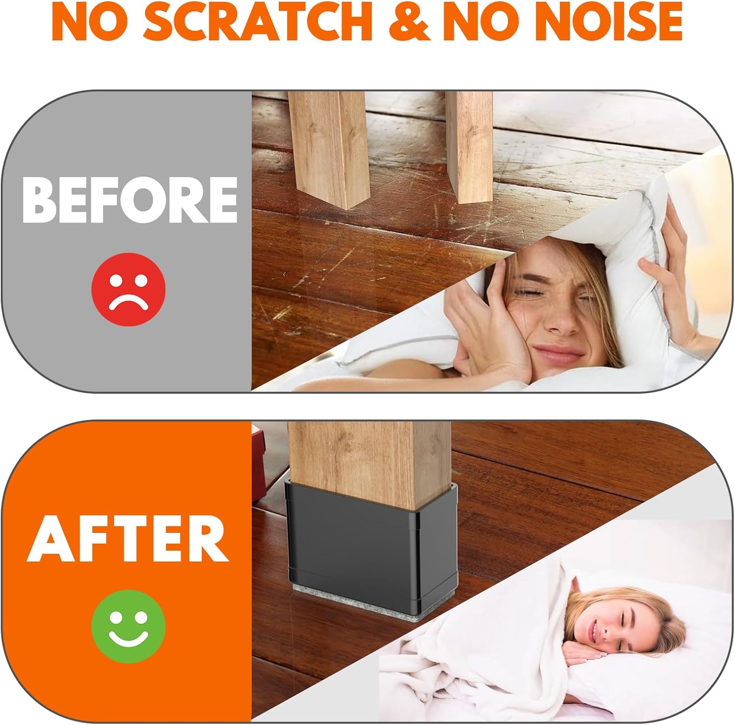 - Prevent Scratches and Reduce Noise: CHWM Black chair leg floor protectors can protect furniture feet, wooden floors, ceramic tiles from scratches, reduce noise and prevent bumps. Felt pad on the bottom reduces resistance and allows furniture to move easily and quietly without lifting.