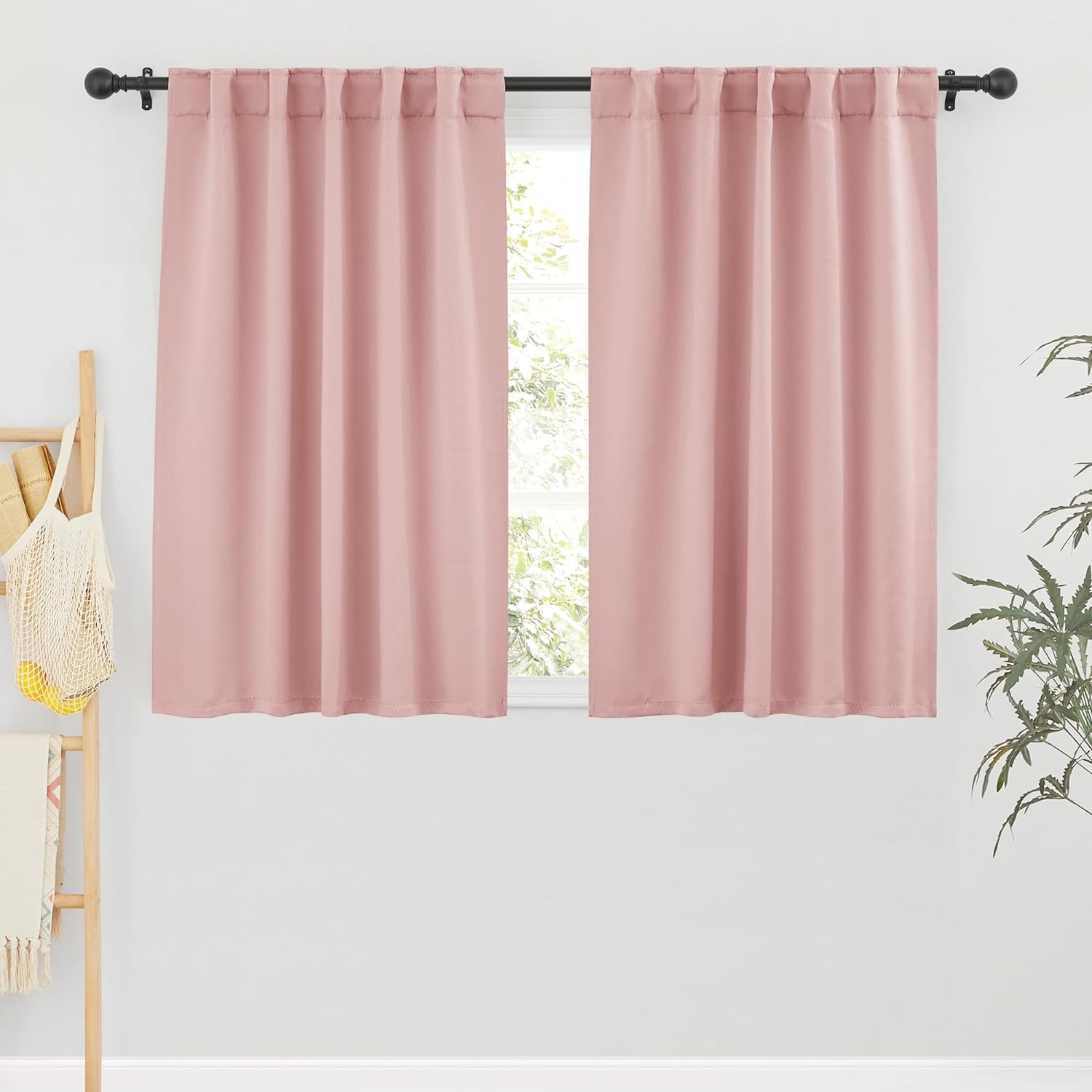 RYB HOME Small Window Curtains Blackout, Privacy Thermal Insulating Drapes for Girls Bedroom Bathroom Basement Cafe Classroom Window Decor, W 34 x L 45 inches, Peach Blush, 2 Panels