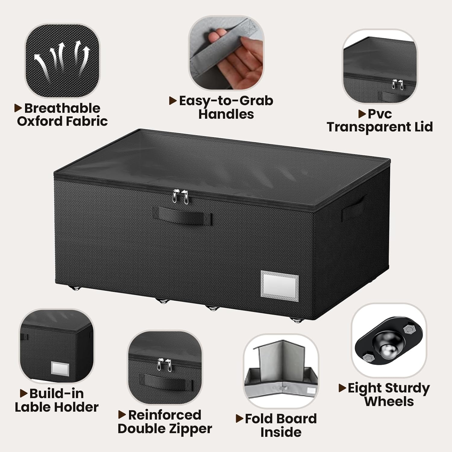 - 【TRANSPARENT LID DESIGN】: The under bed storage with clear lids, this storage solution allows easy identification of contents without opening, reducing clutter and misplaced items, The design keep out moisture, dust, and dirt, maintaining a clean and organized space