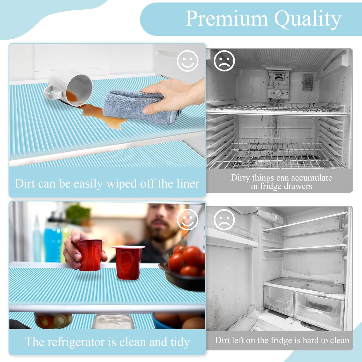 Non-Slip Silicone Refrigerator Liners for Shelves, Reusable Washable Fridge Shelf Drawer Liners, Cuttable Waterproof Oilproof Fridge Liner for Glass Shelve Kitchen Cabinet Drawer Mats (Blue, 1 Pack)
