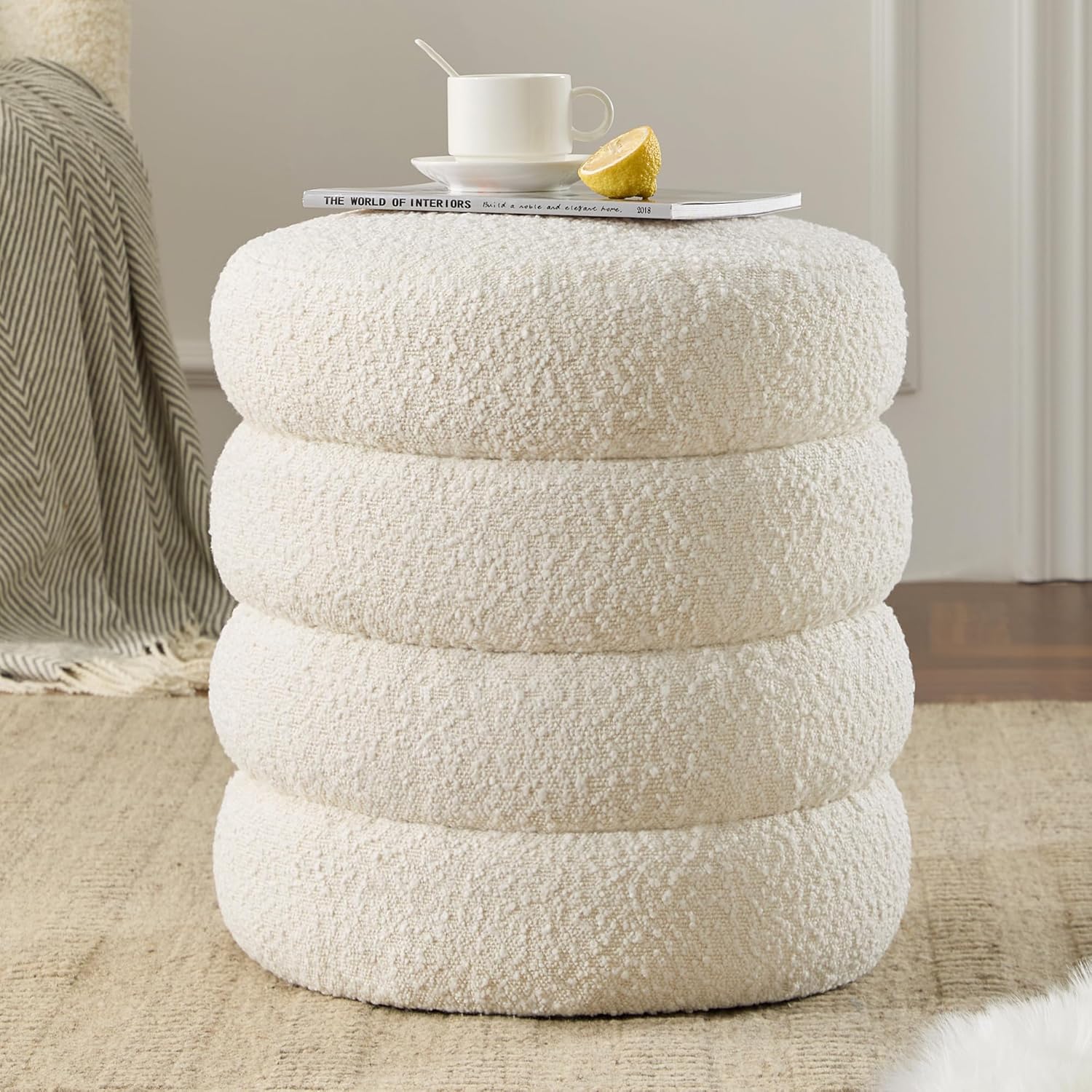 Round Ottoman with Storage Boucle Ottoman Stool with Storage Removable Lid for Living Room Modern Vanity Sorage Stool Foot Rest Bedroom Dorm Gift Set of 1 (White)