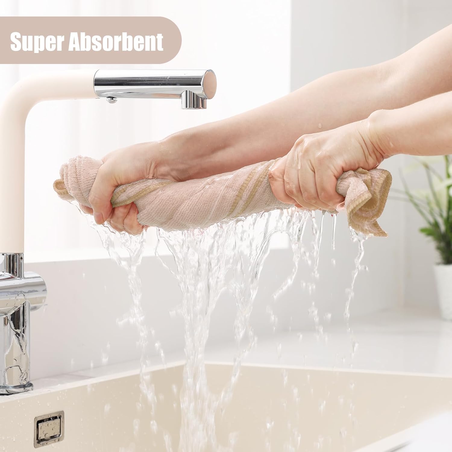 Homaxy Microfiber Kitchen Towels and Dishcloths Set, 12 Pack Soft and Absorbent Dish Hand Towels Bulk, 28 x 16 Inch & 12 x 12 Inch Quick Drying Rags for Washing Dishes, Beige