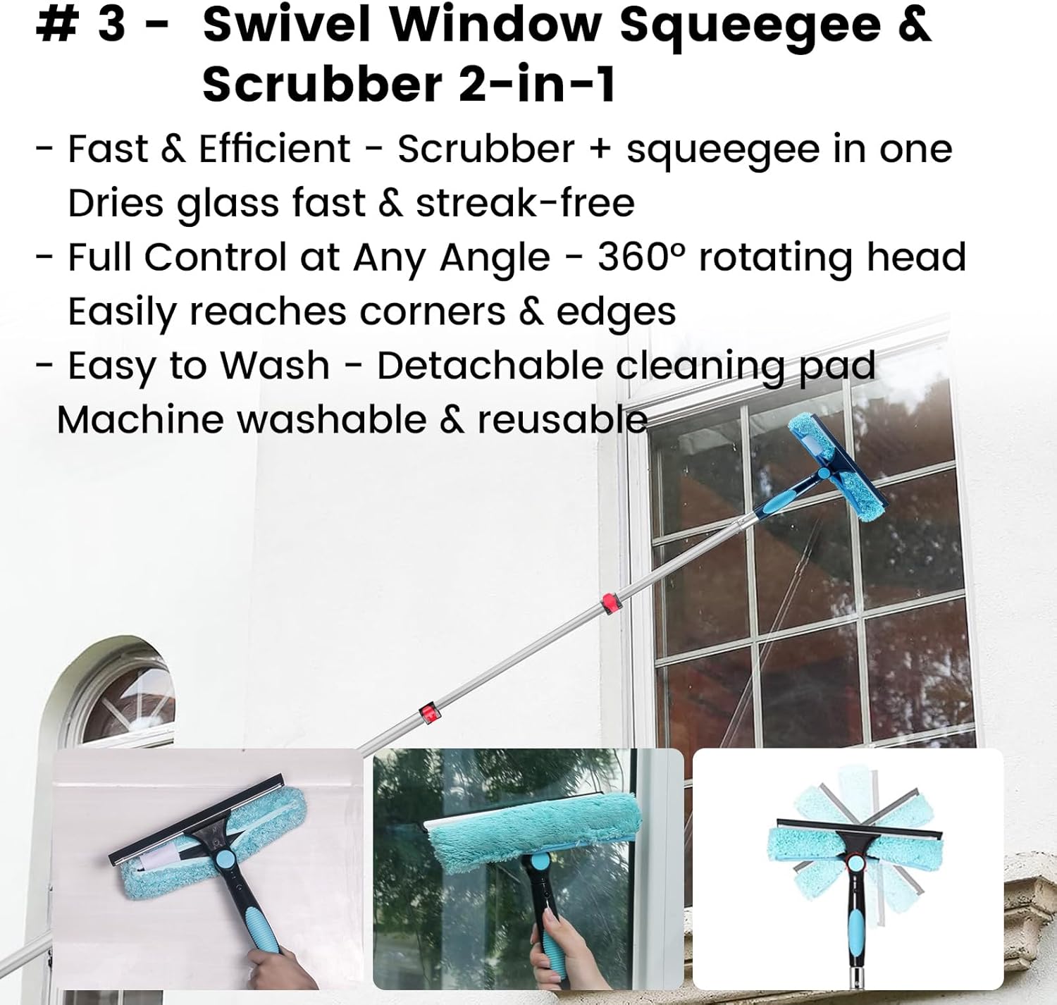 - 【Window Cleaner】Scrub + squeegee for streak-free glass