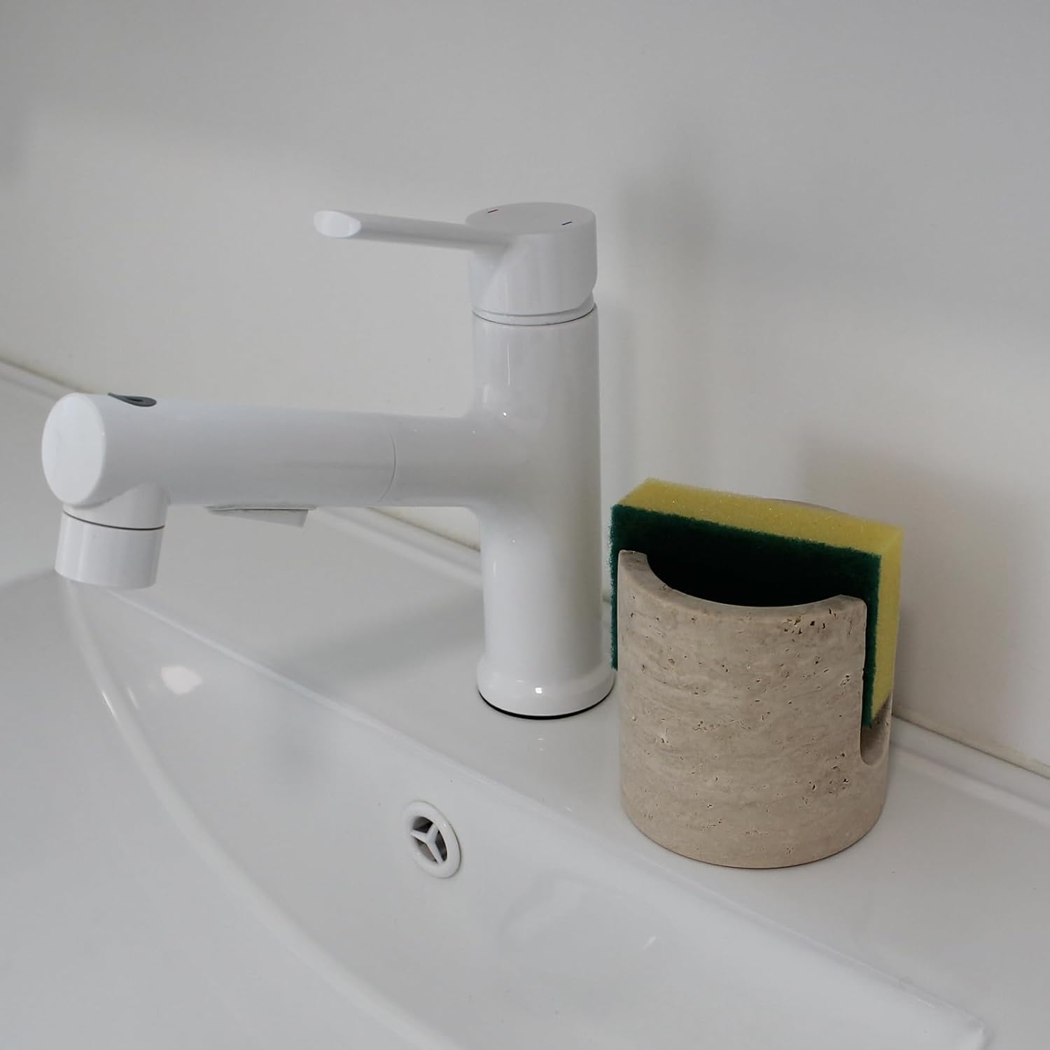- Unique & Stylish Design: Elevate your sink area with this elegant travertine sponge holder. Its modern, minimalist design and natural stone texture add timeless sophistication to any kitchen style—farmhouse, contemporary, or classic