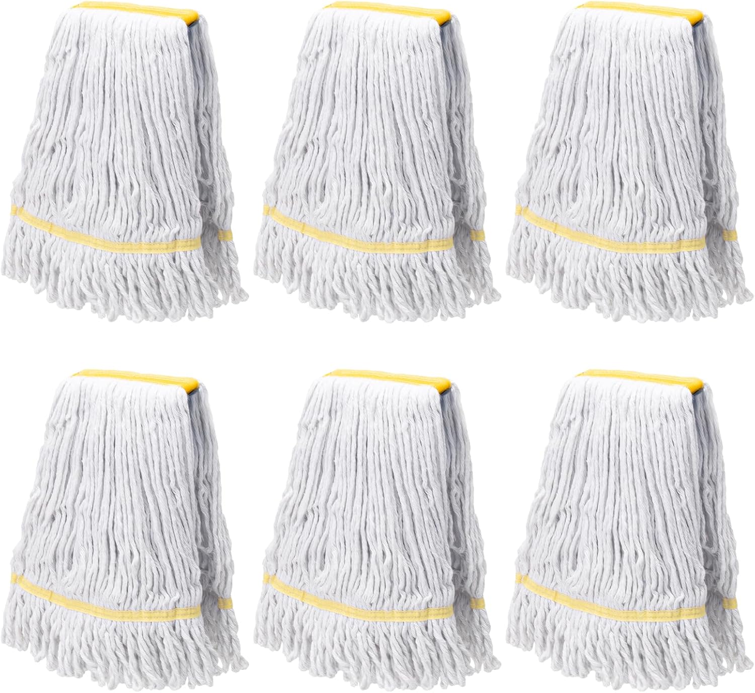 KeFanta 6 Pack Heavy Duty Commercial Mop Head Replacement,Wet Industrial Cotton Looped End String Mops Refill for Floor Cleaning,Yellow
