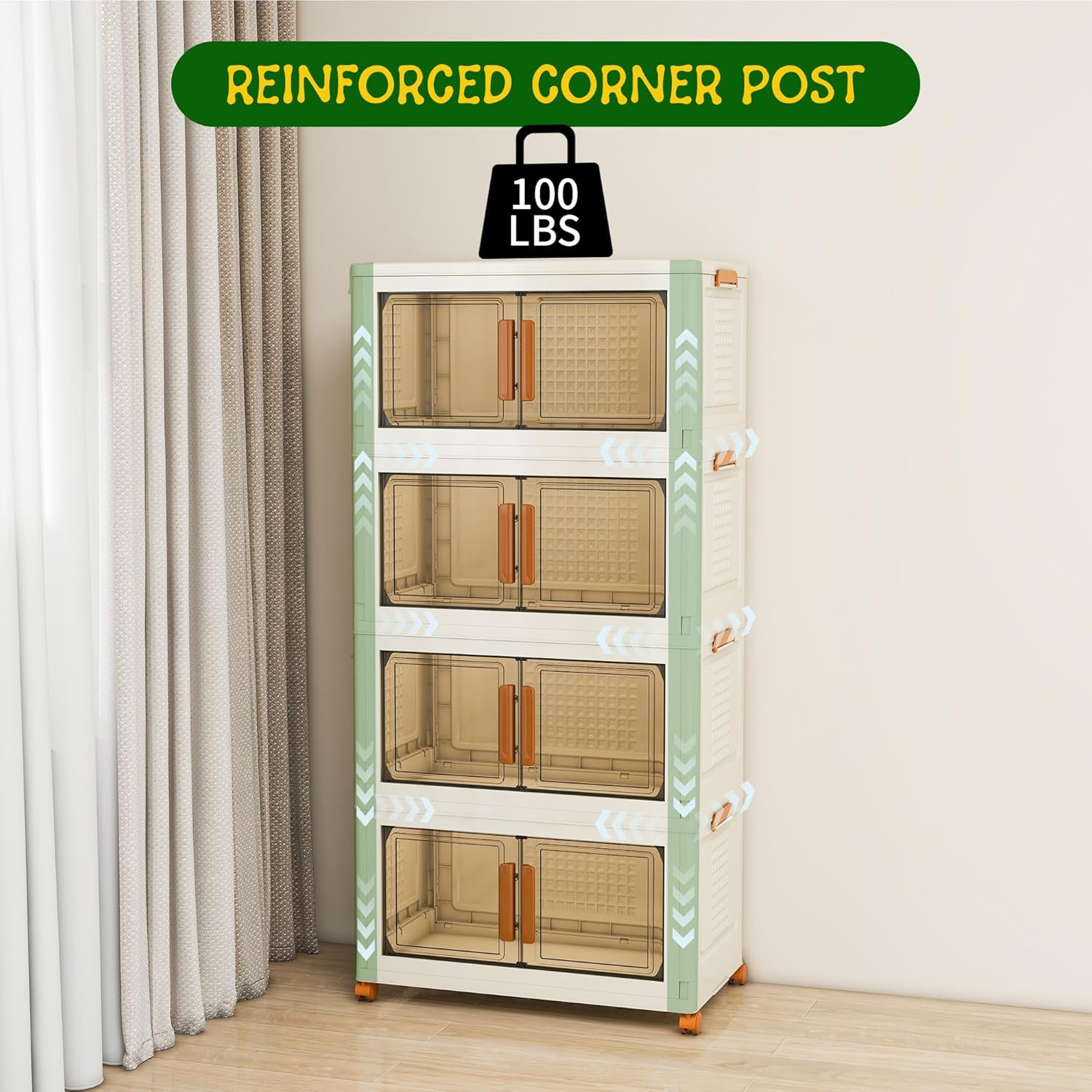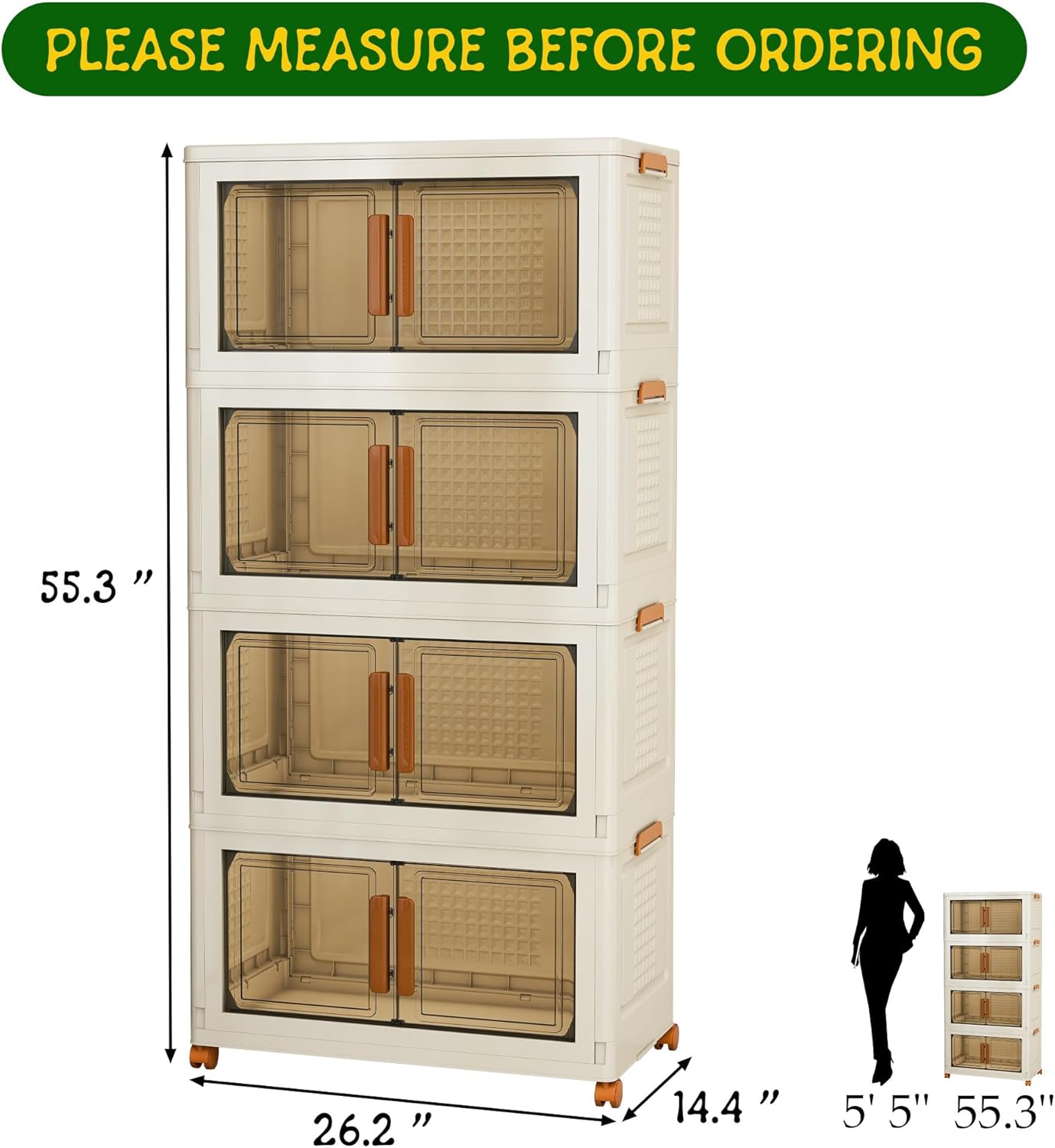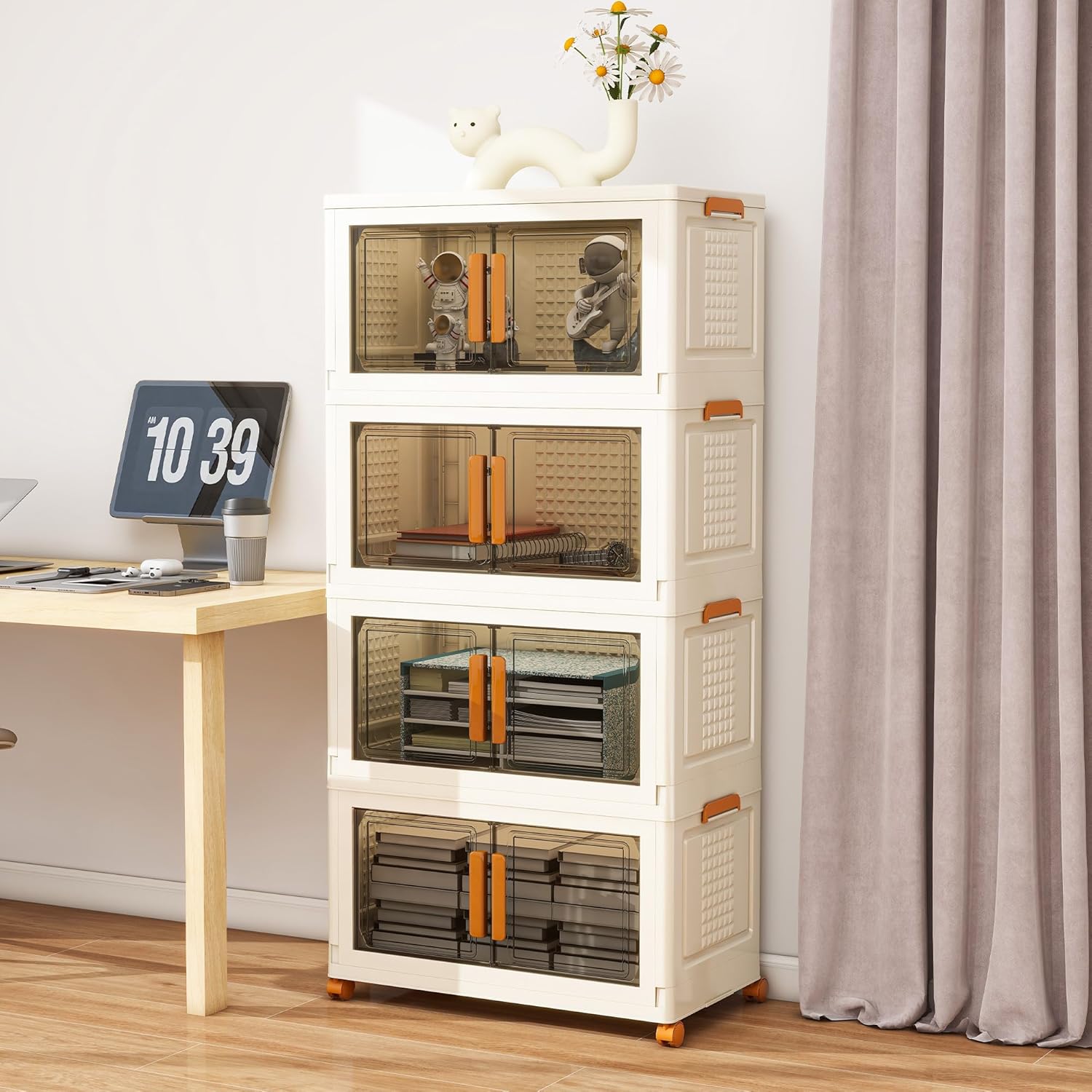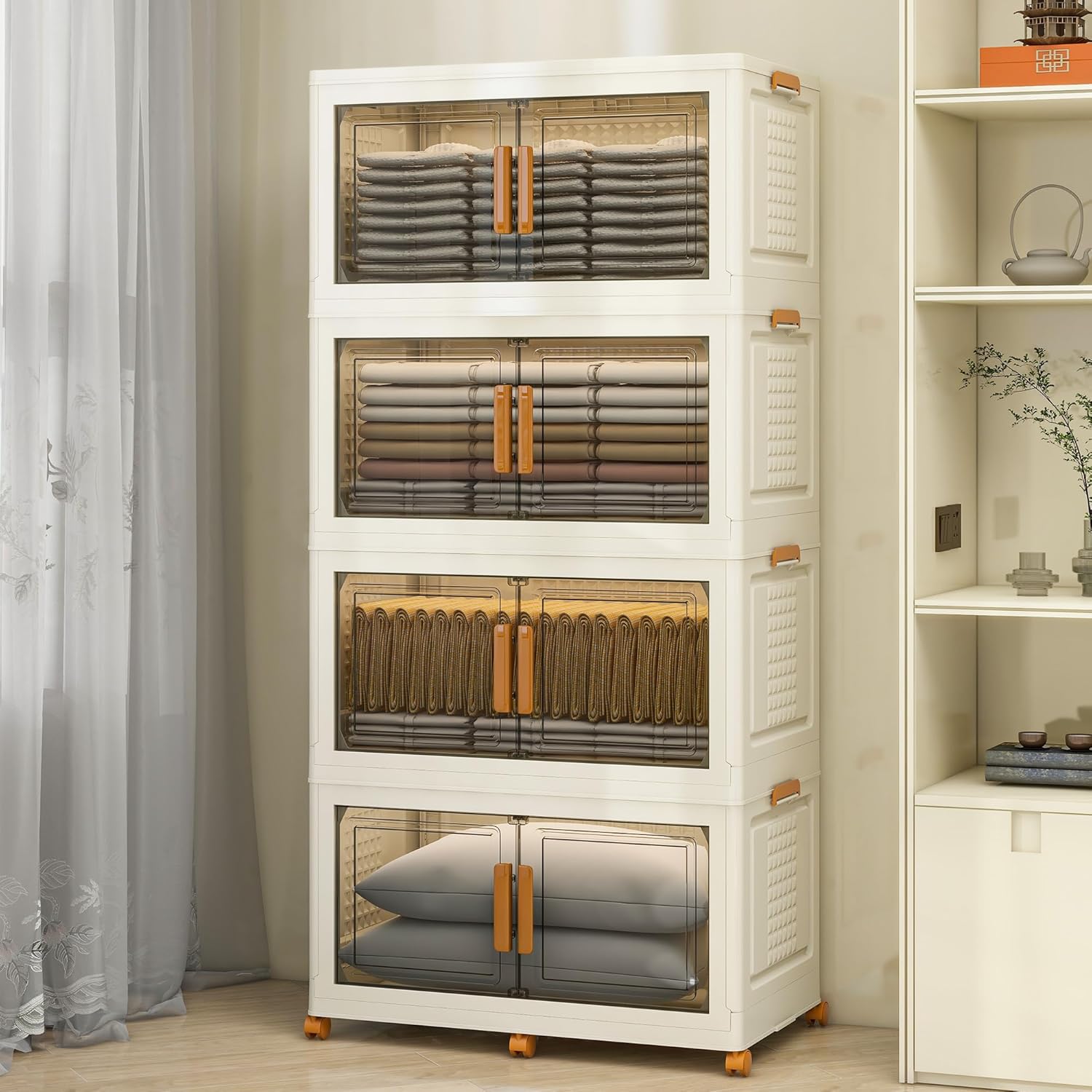 4 Tier Large Stackable Plastic Storage Bins with 1 Lid 95 QT/Tier, Collapsible Plastic Box Storage Bin with Wheels, Home Containers Boxes Closet Organizers for Living Room, Office, Dorm