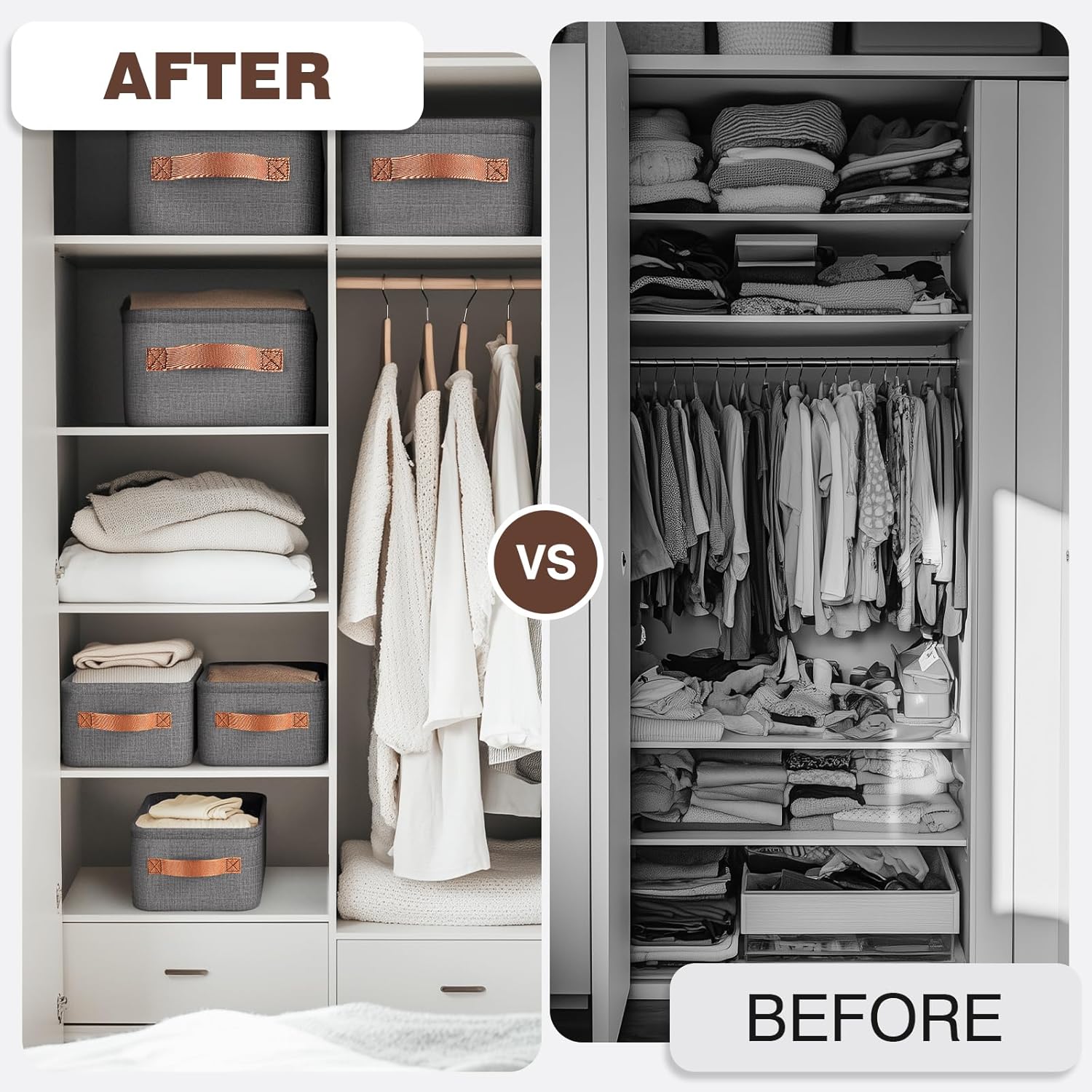 - EASY TO MOVE: The closet storage box is designed with sturdy handles on both sides, which makes it easy to carry the organizer basket from one room to another. The size of the storage basket is 11.8'' L ×7.8'' W × 5.1'' H, a reasonable size design makes the storage basket not only suitable for various spaces, but also easy to move around when you are storing and organizing. It is also easy to move around when you are organizing