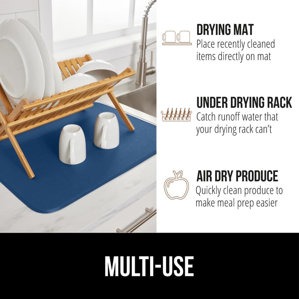 GORILLA GRIP Ultra Water Absorbent Microfiber Dish Drying Mat, 18x32, Quick Dry Thick Mesh, Slip Resistant Pad for Sink Dishes or Under Rack, Kitchen Counter Accessories, Machine Wash, Blue
