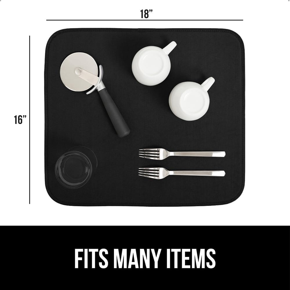 GORILLA GRIP Ultra Water Absorbent Microfiber Dish Drying Mat, Quick Dry Thick Mesh, Slip Resistant Pad for Sink Dishes or Under Rack, Kitchen Counter Accessories, 16x18, Machine Wash, 2 Pack Black