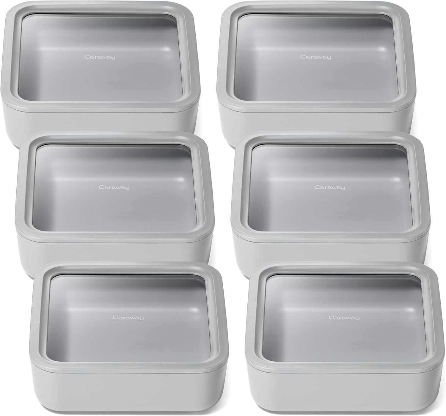 - KEEP YOUR FOOD FRESH: Look forward to leftovers with Caraway’s easy-to-store, non-toxic food storage containers. This set of six 10 cup glass containers was designed to be displayed and keeps your food fresh & organized.