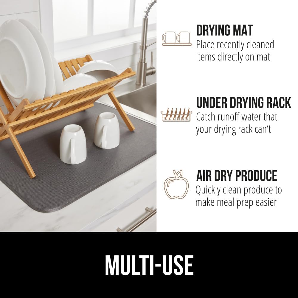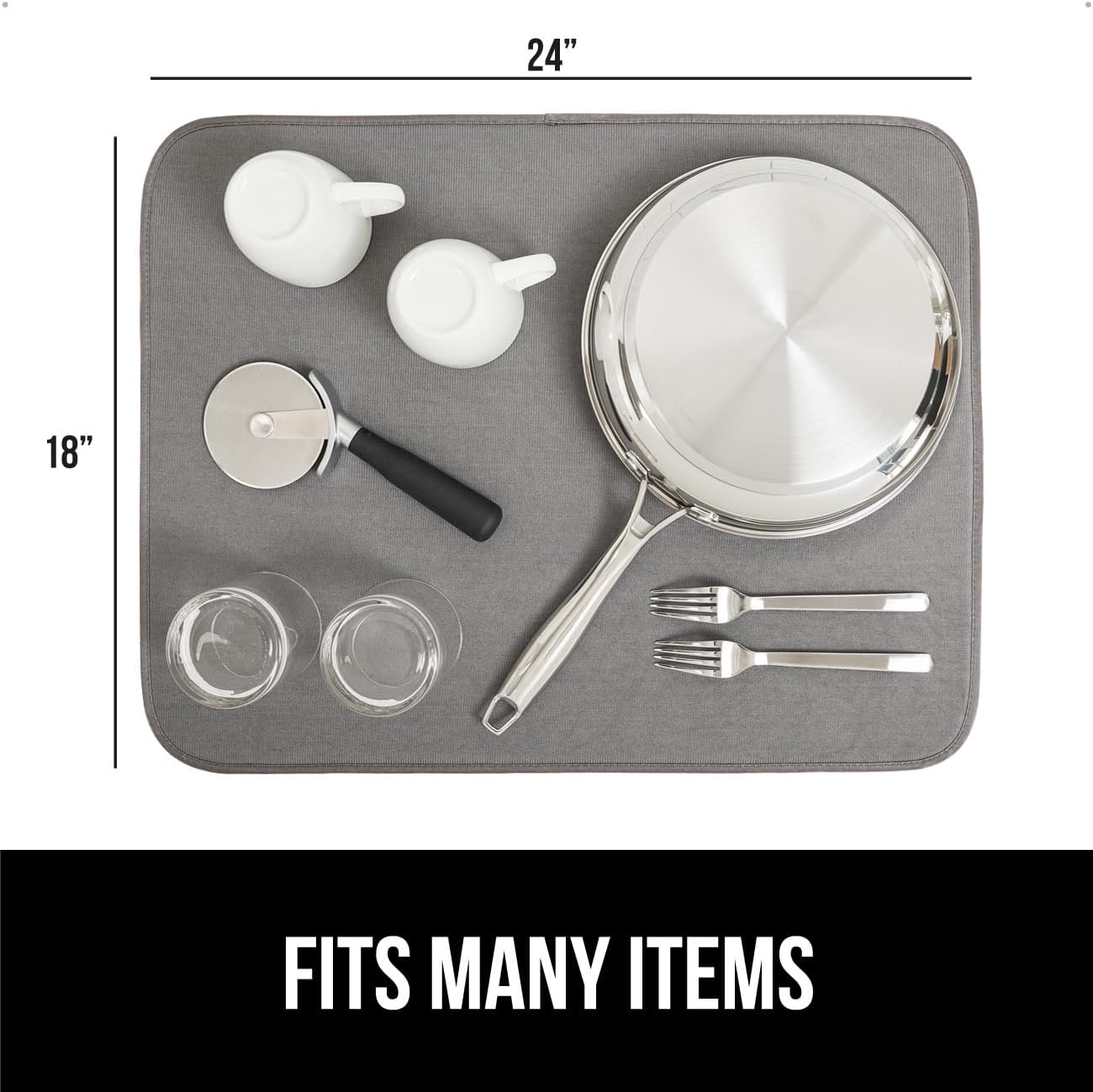 GORILLA GRIP Ultra Water Absorbent Microfiber Dish Drying Mat, 18x24, Quick Dry Thick Mesh, Slip Resistant Pad for Sink Dishes or Under Rack, Kitchen Counter Accessories, Machine Wash, 2 Pack Gray