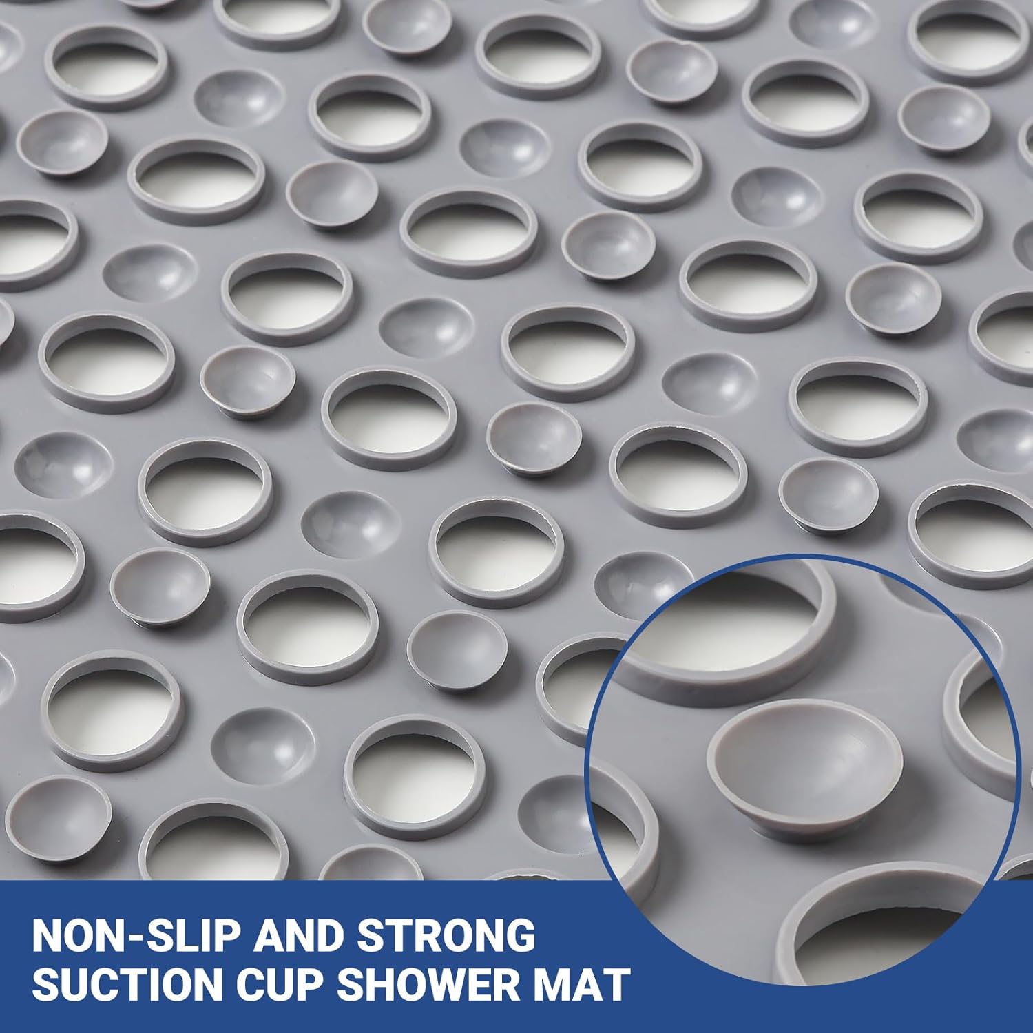 Non Slip Bathtub Mat and Shower Mat 31x17 inch,Bath Mat with Quick Dry Drain Holes and Suction Cups, Soft Comfortable Safe Bathroom Mat for Bath Tub, Floor, Tile (Grey)