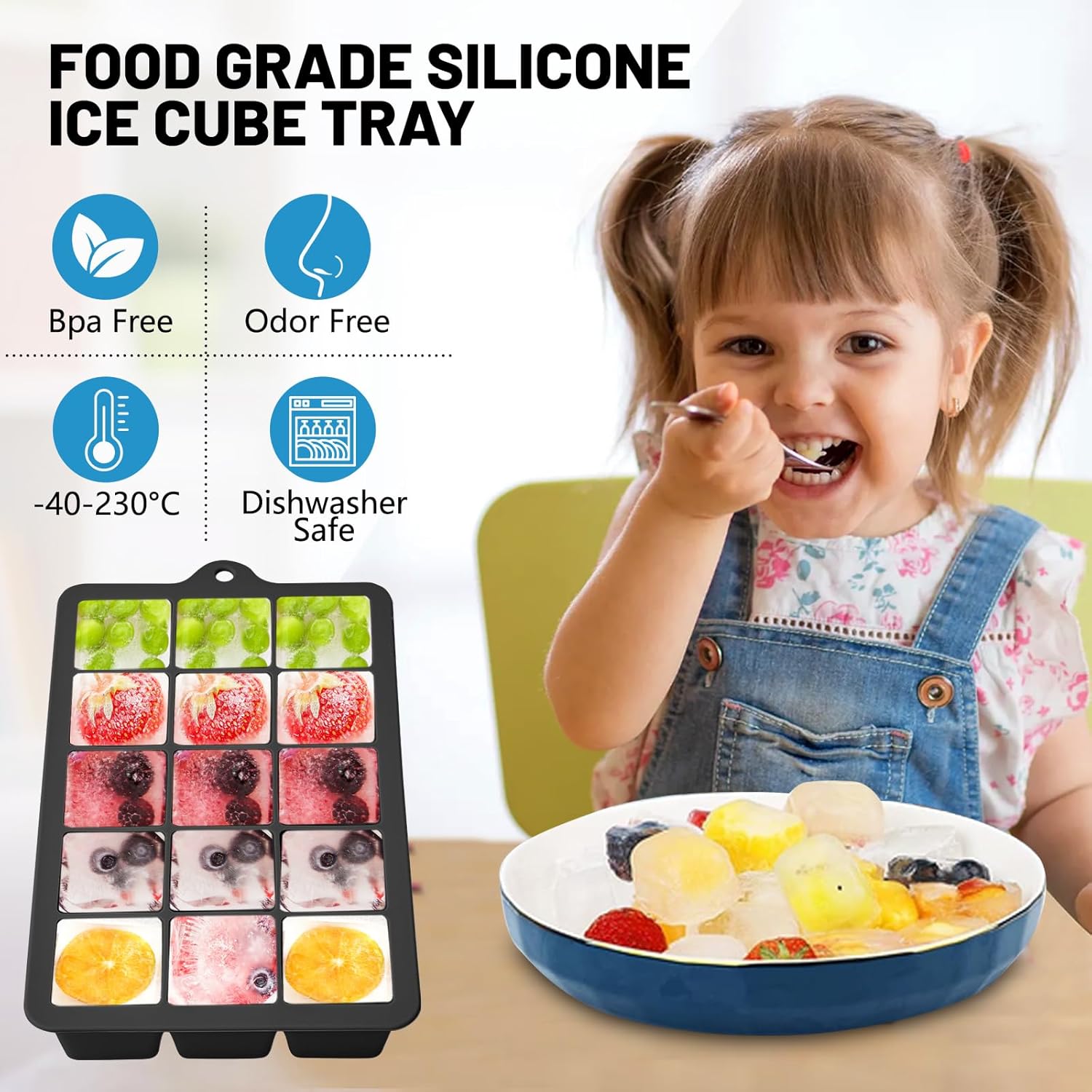 - Perfect Size Ice Cubes; 15 ice cube tray set of 3, each tray creates 15 nice-sized cubes, and you will get 45 ice cubes in total. Small cube size is 1.2 x 1.2 x 1.2 inches. Perfect for chilling whiskey, cocktails, drinks and fruit juice