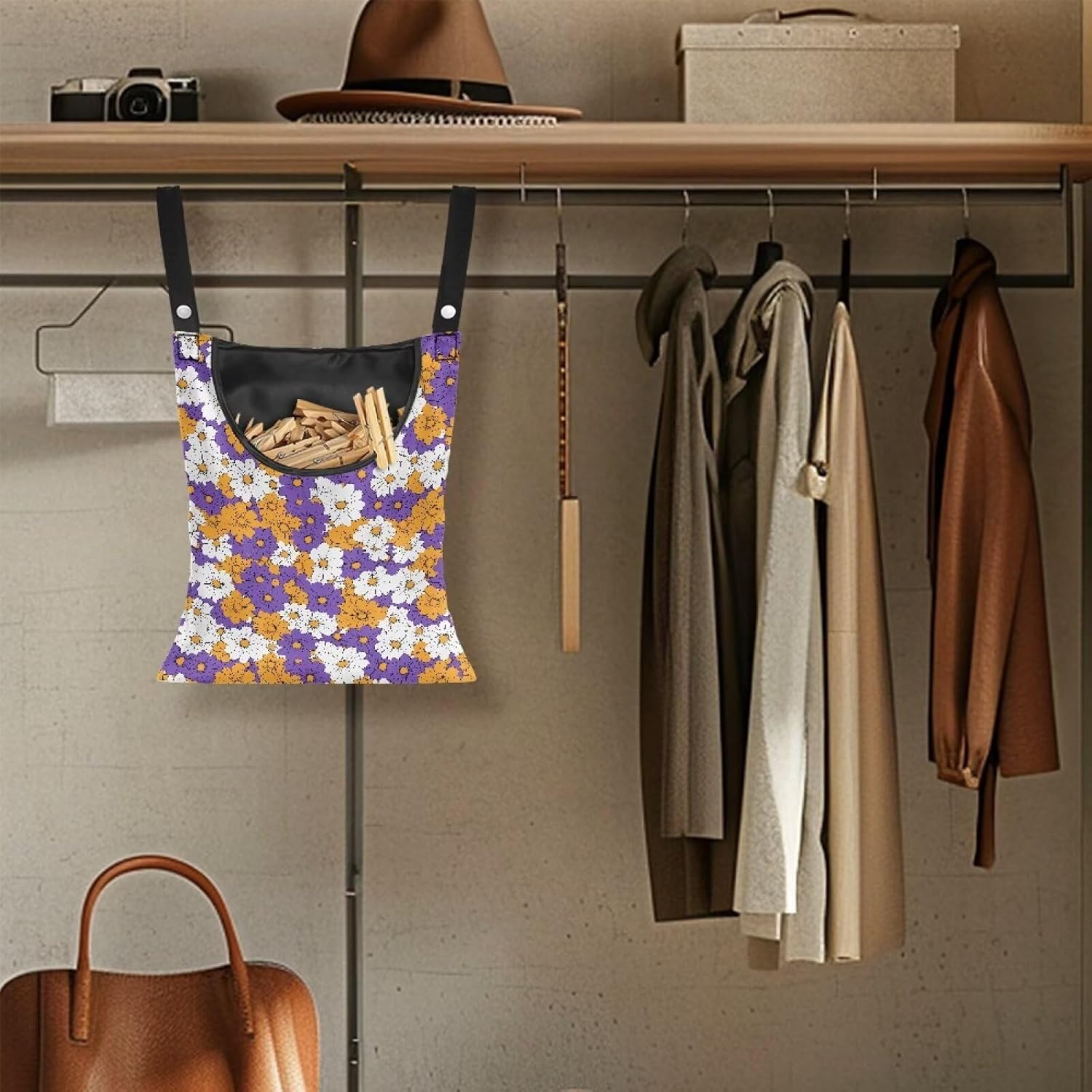2 Pcs Clothes Pin Hanging Bag, Hippie Flower Multi-Functional Clothespin Bag for Clothes Pin Hanging Bag and Pin Bag Fits Outdoor Laundry Clothesline