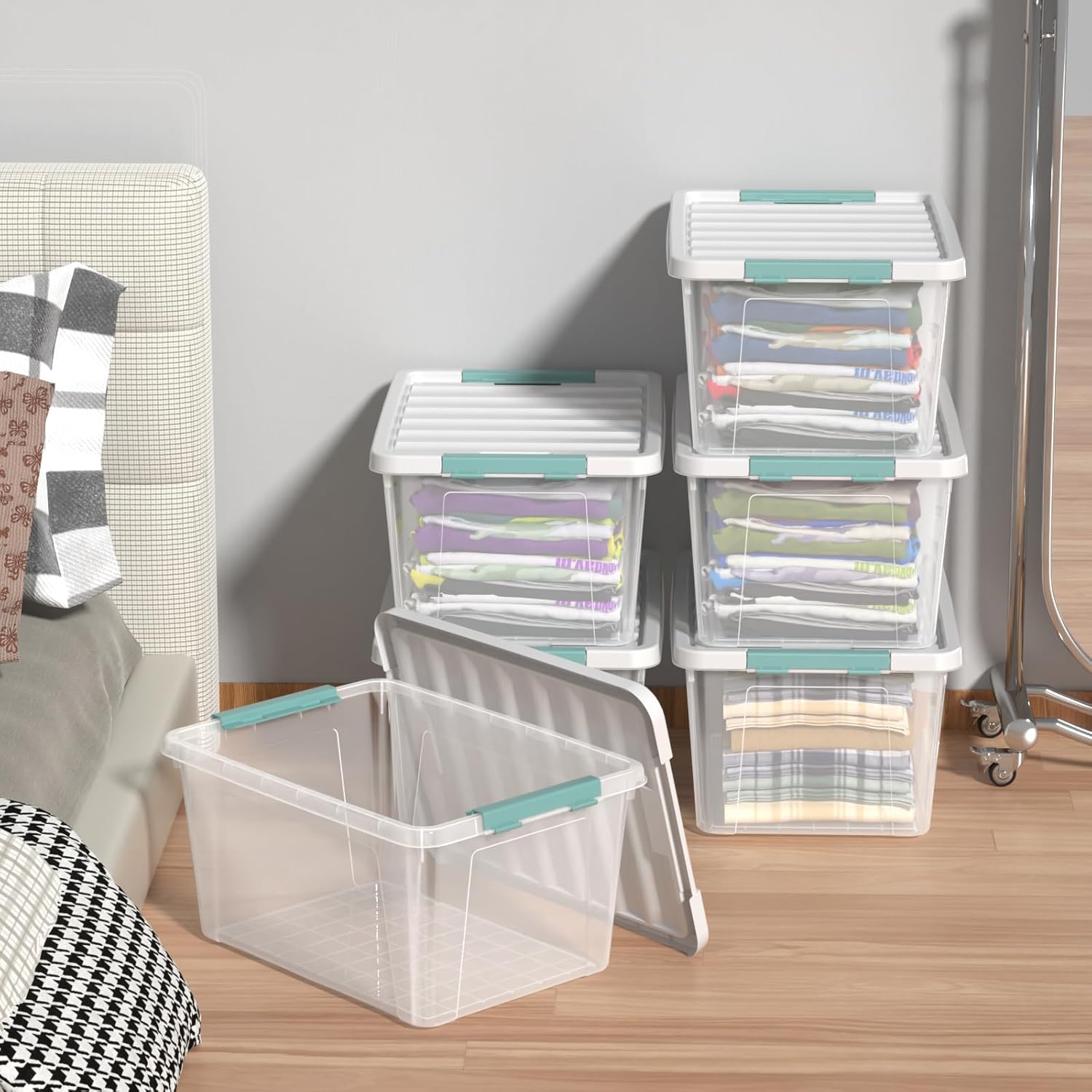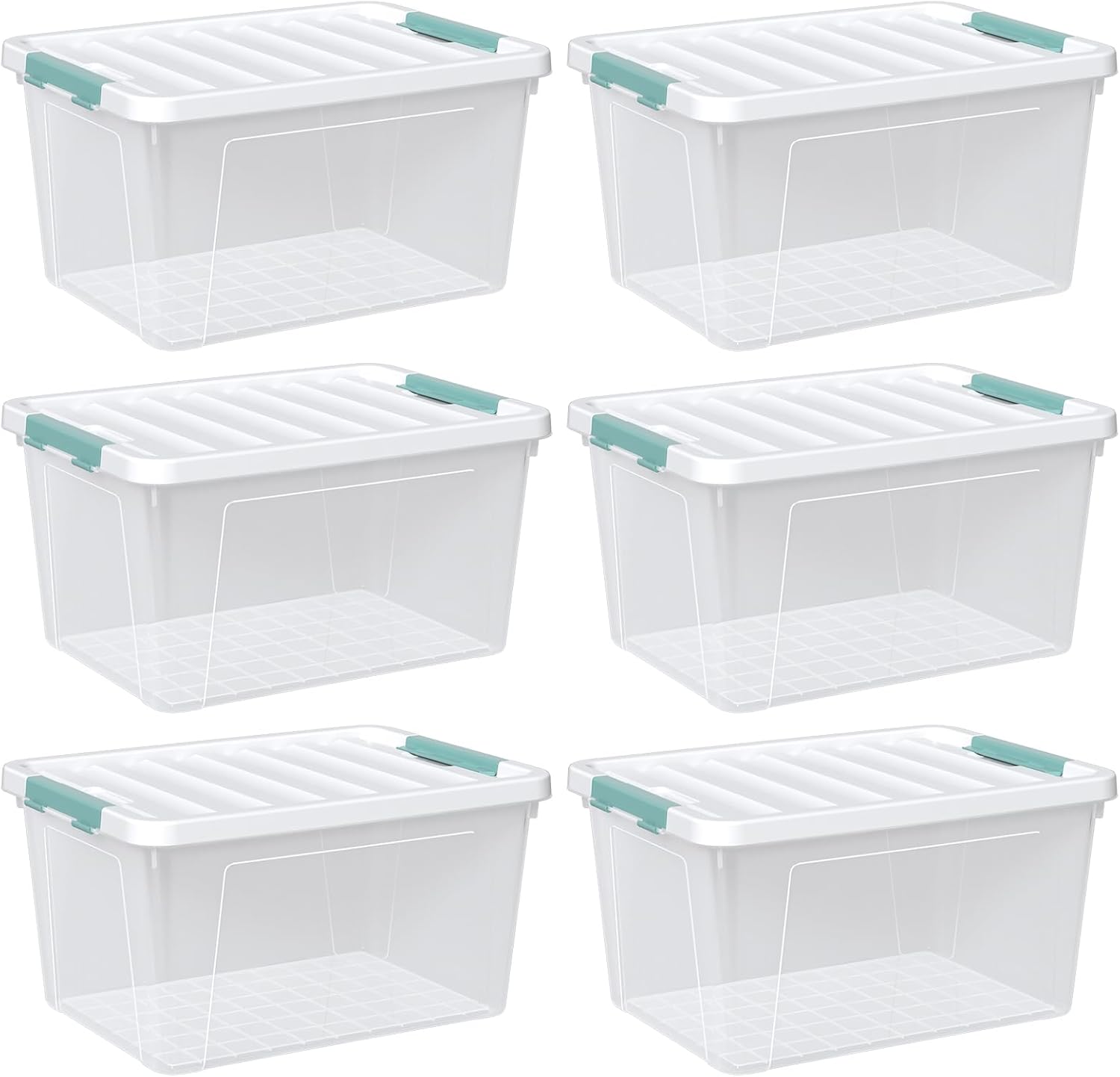 - A set of 6 35 quart transparent plastic boxes, perfect for sorting and organizing your personal belongings