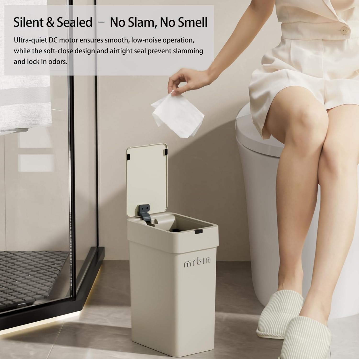 MRBIN Motion Sensor Bathroom Trash Can with Lid, 9L/2.4gal Automatic Plastic Slim Covered Electric Waste Basket, Narrow Rectangle Garbage Bin Under Desk for Small Office, Bedroom, Kitchen, Rv, Gray